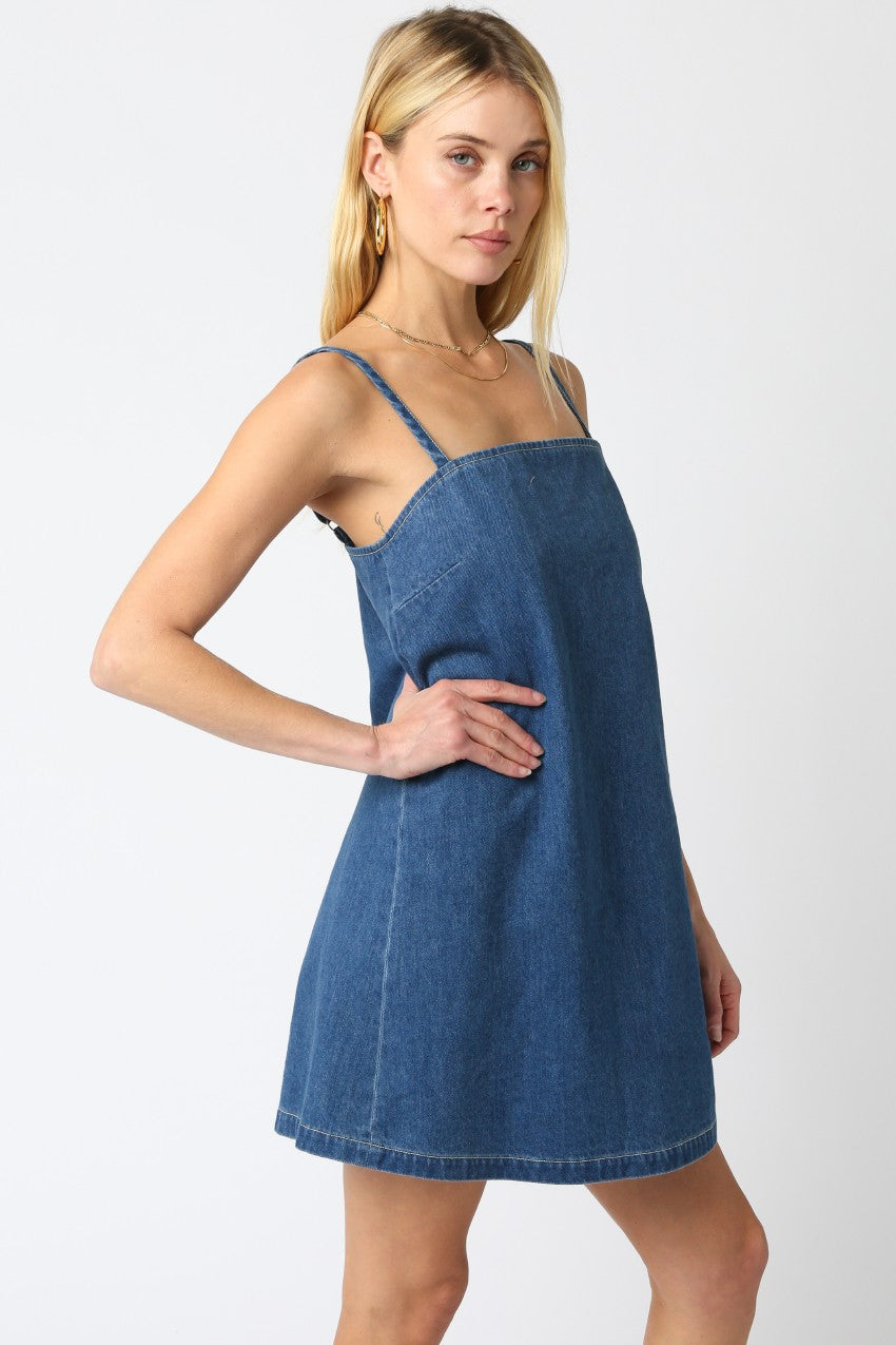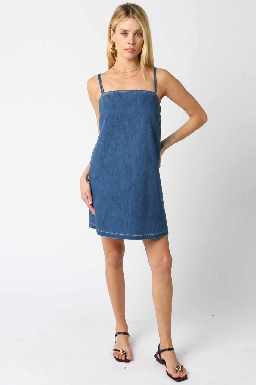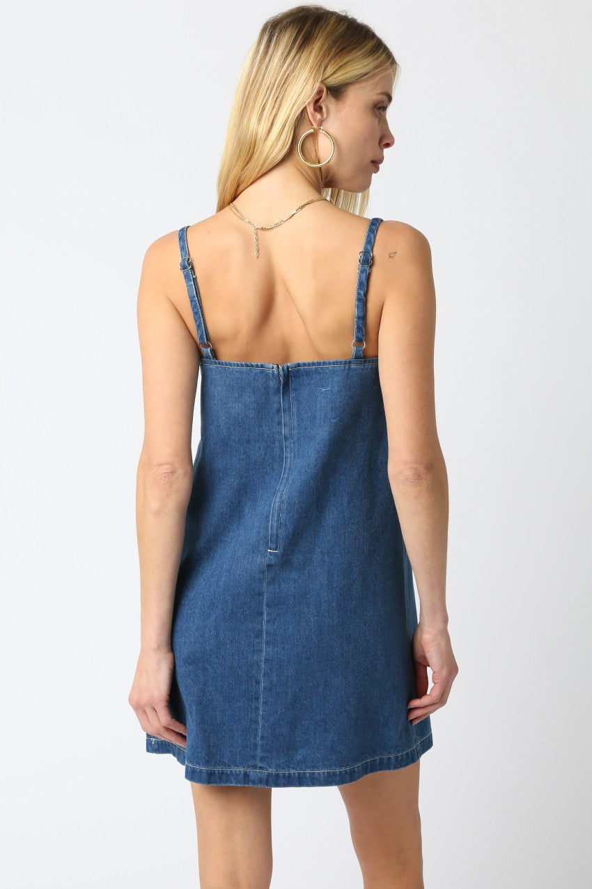 The Violette Denim Mini is crafted from 100% cotton, ensuring breathability and comfort. It features a practical zipper closure at the back for easy wear and an adjustable strap that allows for a customized fit. This denim dress combines classic style with functional design, making it a versatile addition to any wardrobe.