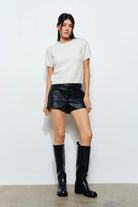 The Brenda Knit Tshirt delivers effortless sophistication through its premium soft knit construction, designed to move with you throughout your day. Cut to a flattering hip length, this piece skims the body without clinging, while classic short sleeves ensure year-round versatility. Whether layered under blazers or worn solo with your favorite bottoms, it transitions seamlessly from casual weekends to polished weekday moments. The carefully selected knit fabric maintains its shape, making it a reliable foundation piece for any wardrobe.