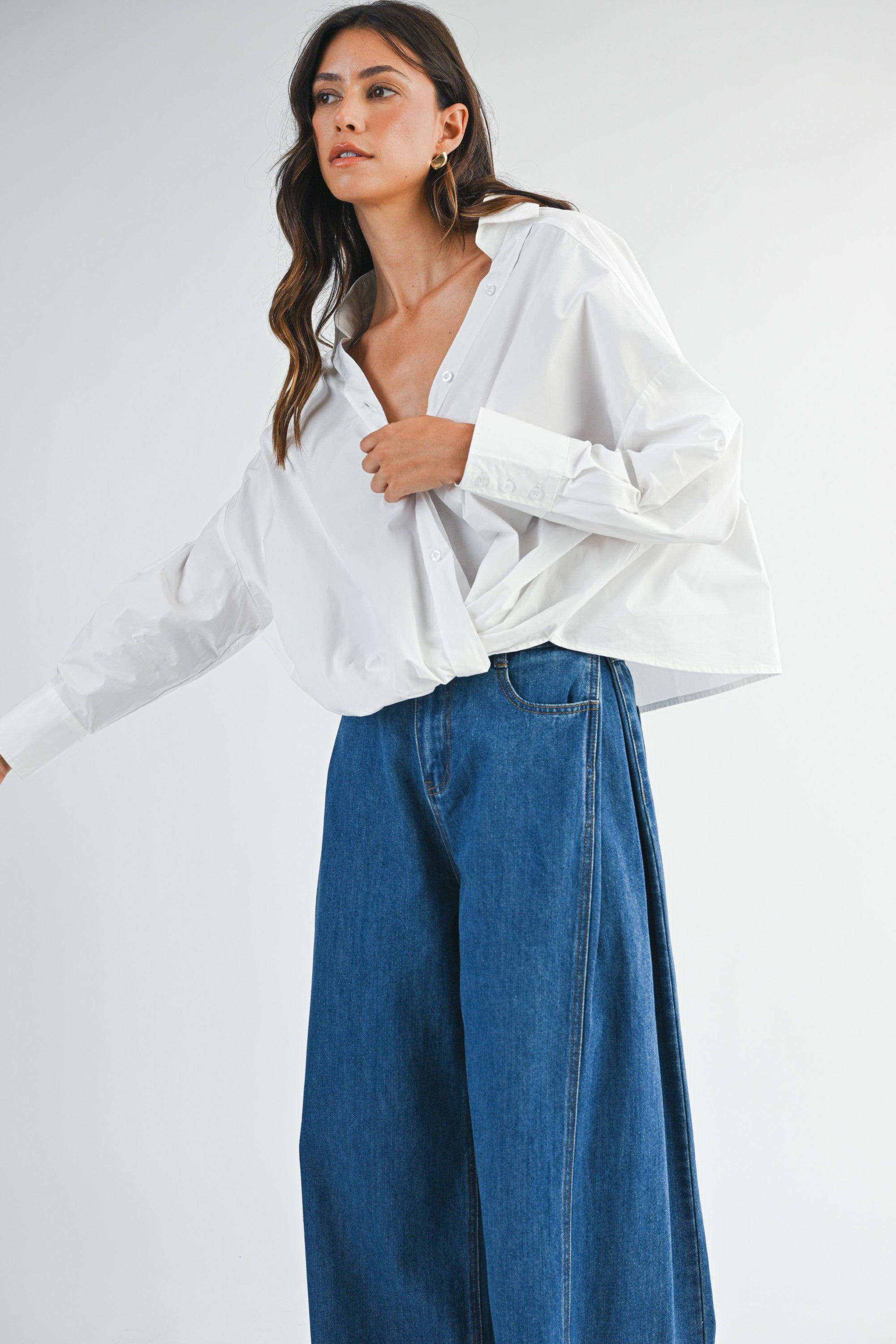 Cross Front Button Up- White