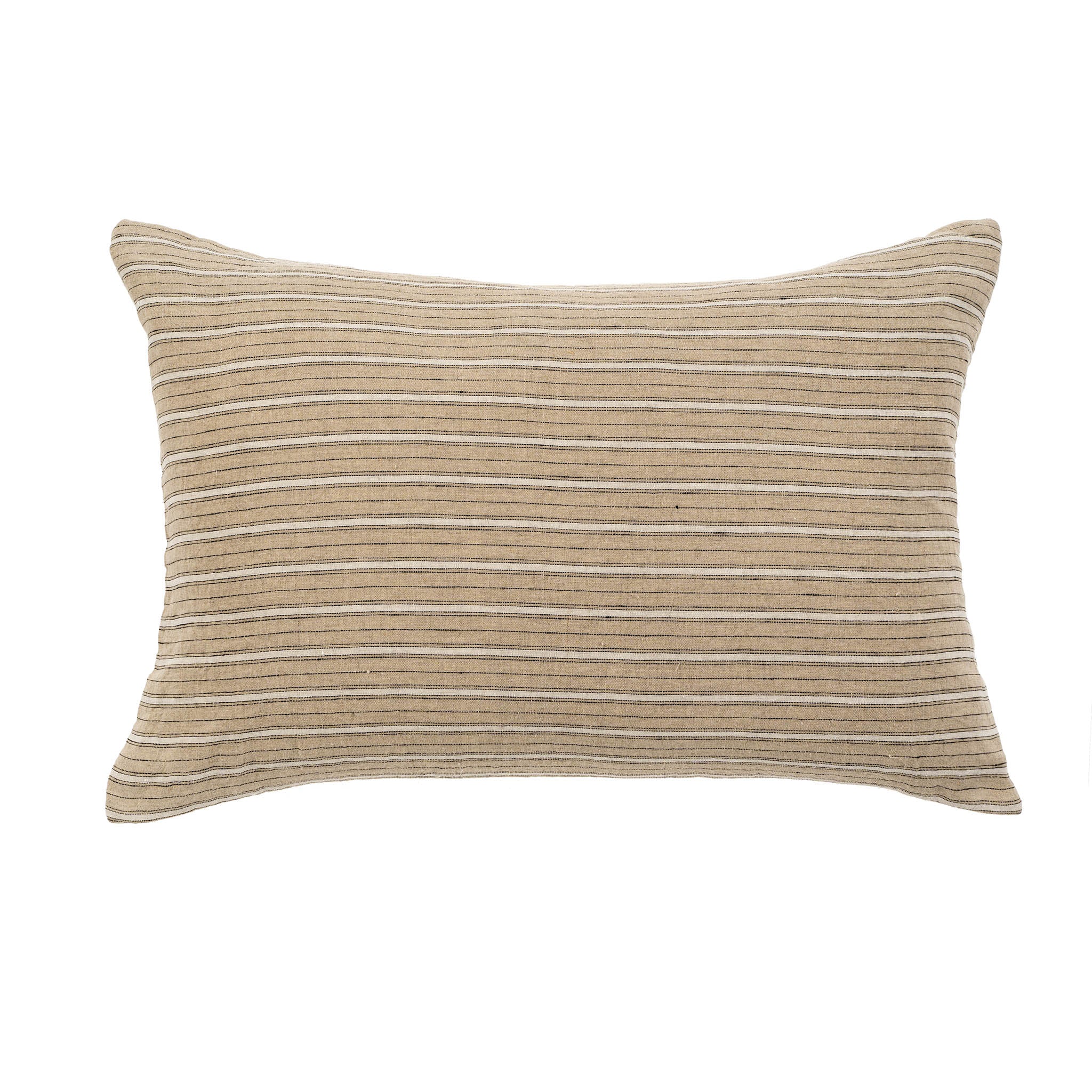 The Brighton Striped 16x24 pillow showcases enduring style crafted from a linen and cotton blend with classic stripes on the front. The back features a solid cotton weave in a matching tone, offering both versatility and lasting quality. Perfect for adding understated texture and sophistication to any room. Filled with a premium feather and down insert certified by the Responsible Down Standard (RDS), this pillow supports ethical sourcing alongside elegant design. For best care, hand washing is advised.
