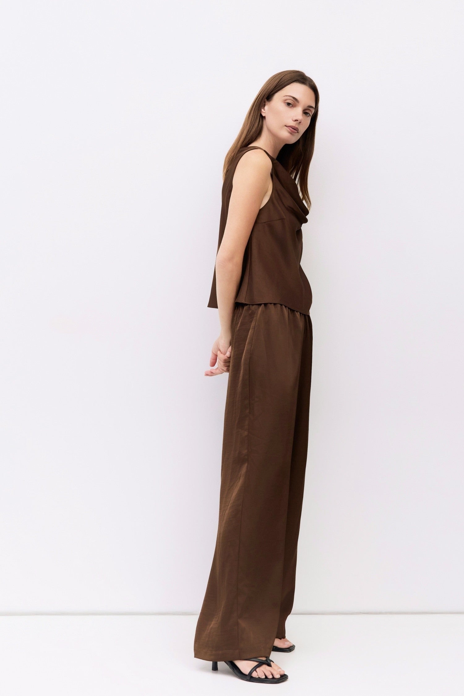 Crafted from crushed satin, the Dakota Satin Trousers feature an elastic waistband and wide legs to ensure a relaxed, comfortable fit. Their luxurious texture combined with effortless style makes them ideal for both casual and refined looks, offering versatility without compromising on comfort.