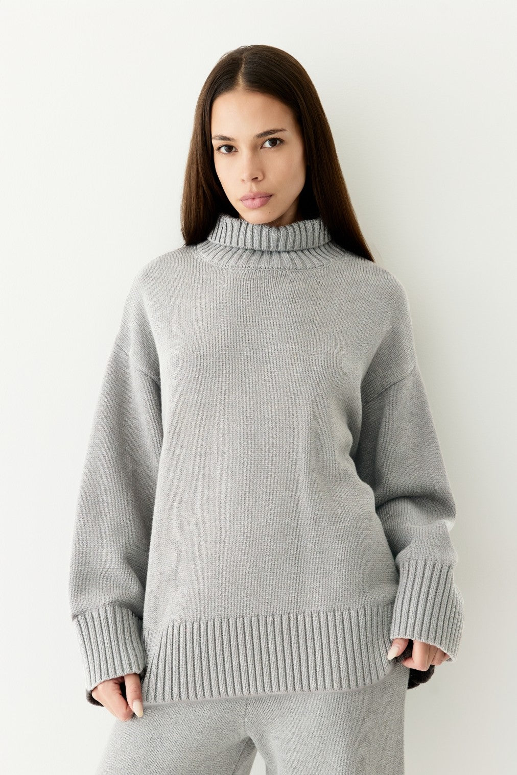 The Anderson Turtleneck is your go-to for cozy warmth and elevated style. With its heavy-weight knit and oversized design, it offers maximum comfort without compromising on the essentials. The rib detailing adds texture, making it perfect for any occasion.