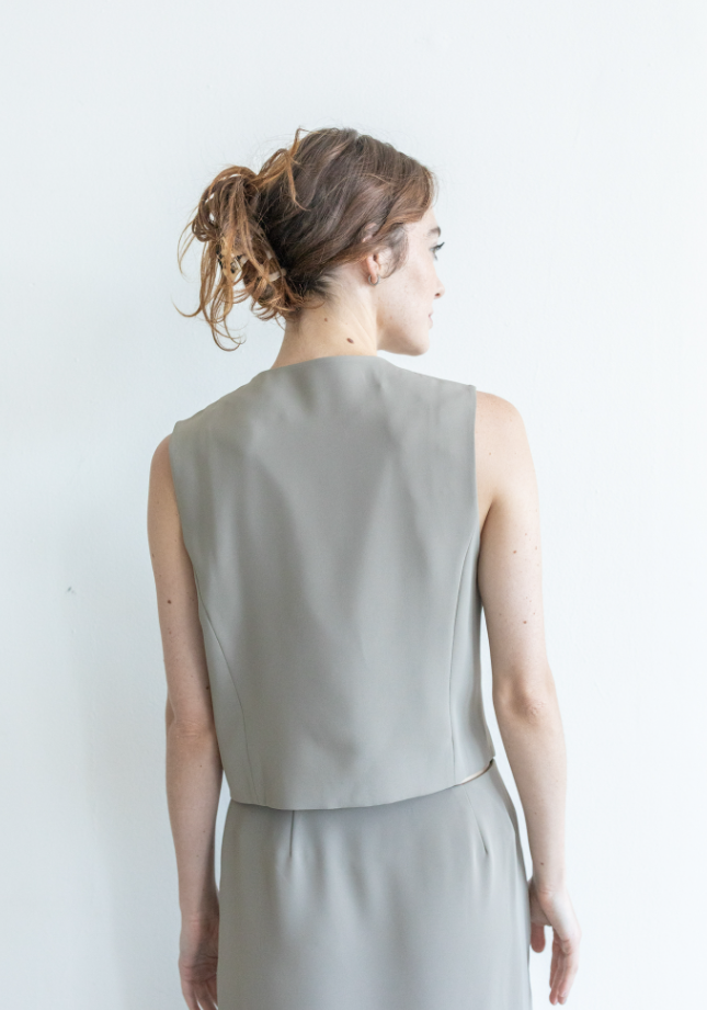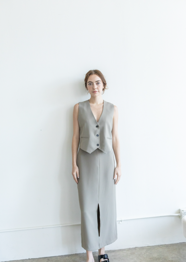 Elevate your fall wardrobe with our Aspen Khaki Vest. This staple piece features the perfect shade of khaki, ideal for the season. Wear it on its own or layer it with jeans for a versatile and stylish look. Complete the look with our matching Aspen Skirt. Timeless and effortlessly chic.