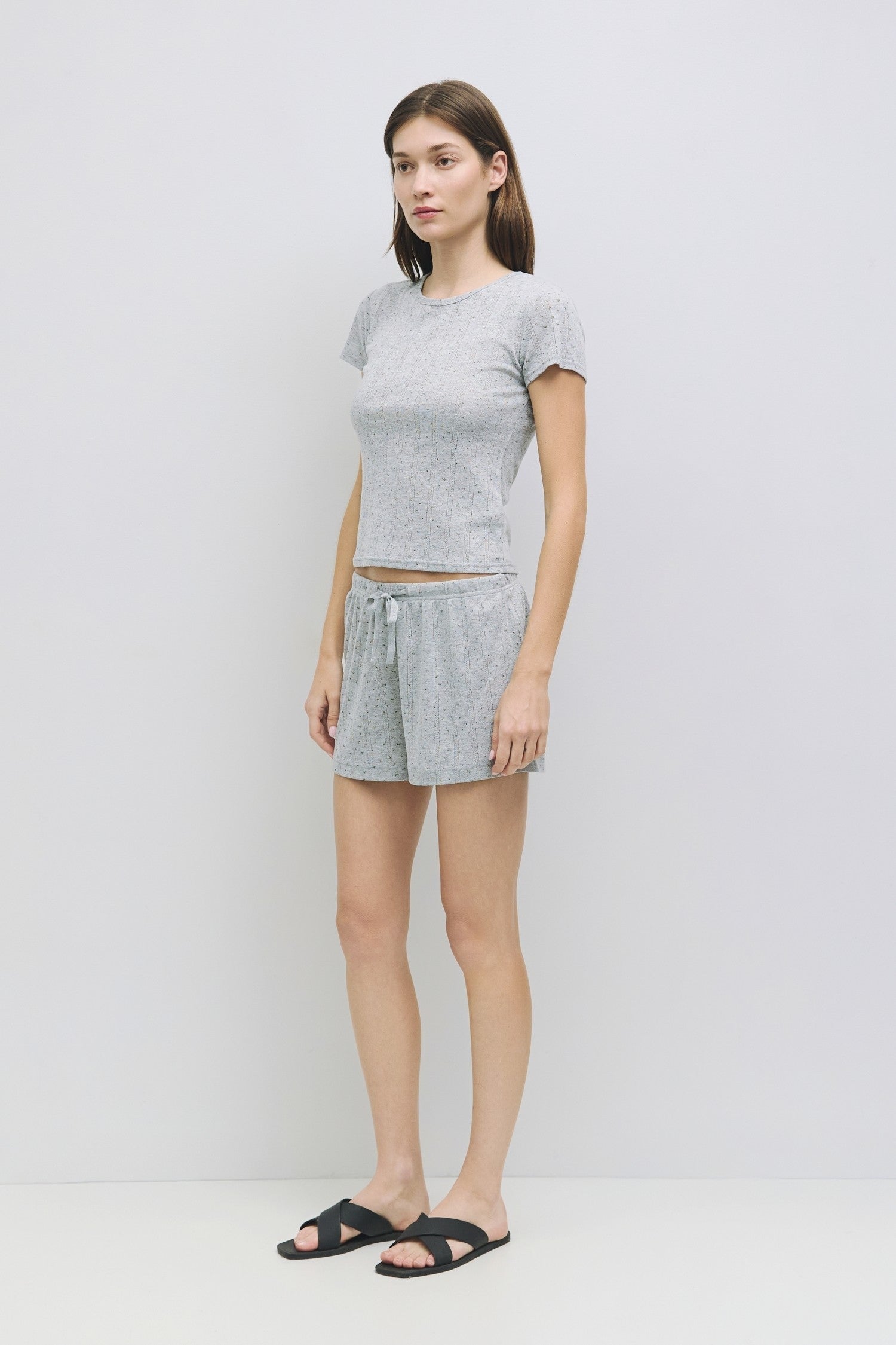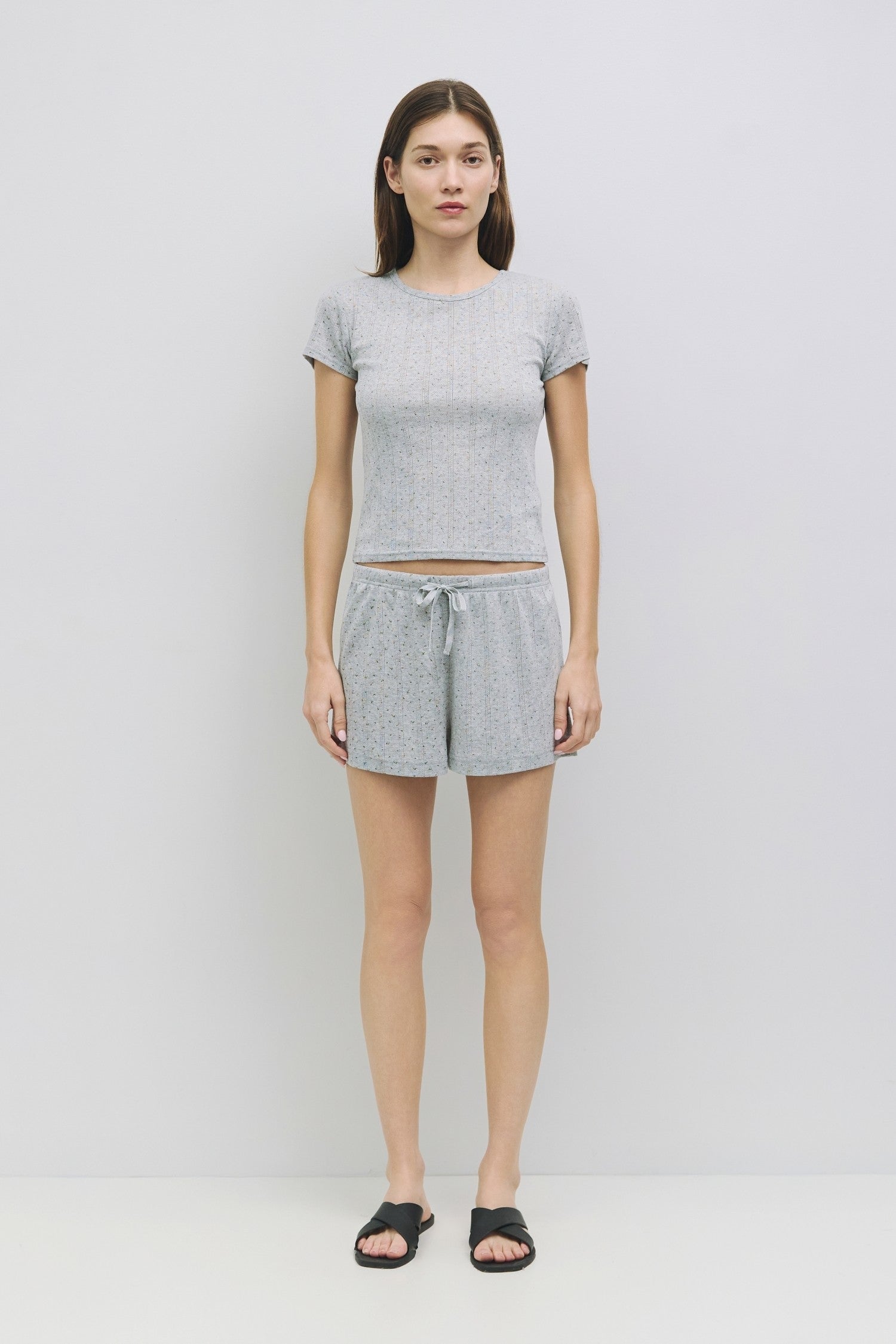 These Charlie Boxer Shorts feature a delicate floral print and are crafted from a soft and cozy pointelle fabric. Designed with front ties and a single back pocket, they offer both style and function. Pair them with The Charlie Top for a complete and comfortable look.