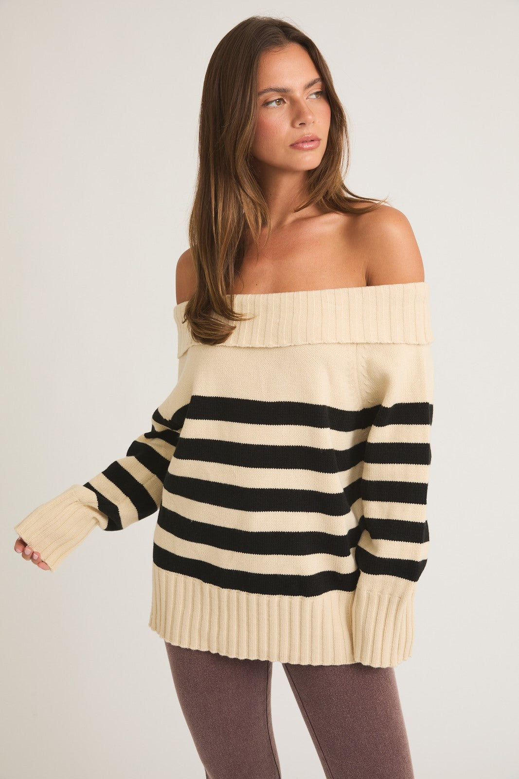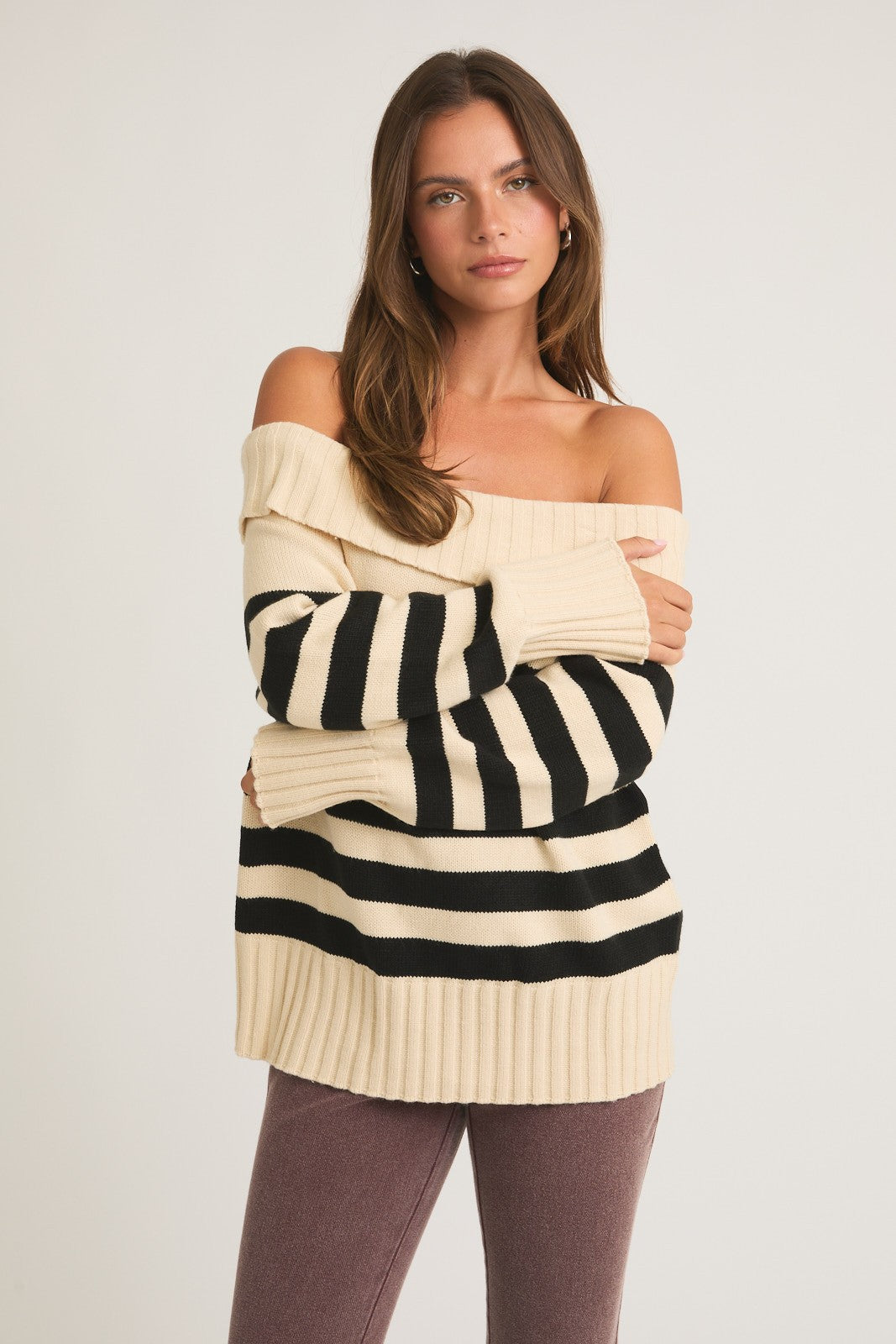 The Selena Off The Shoulder Knit is the perfect combination of style and comfort. With a trendy off the shoulder design and classic striped pattern, this knit sweater is a must-have for any fashion-forward individual. Made with high-quality materials, it provides warmth and style in equal measure.