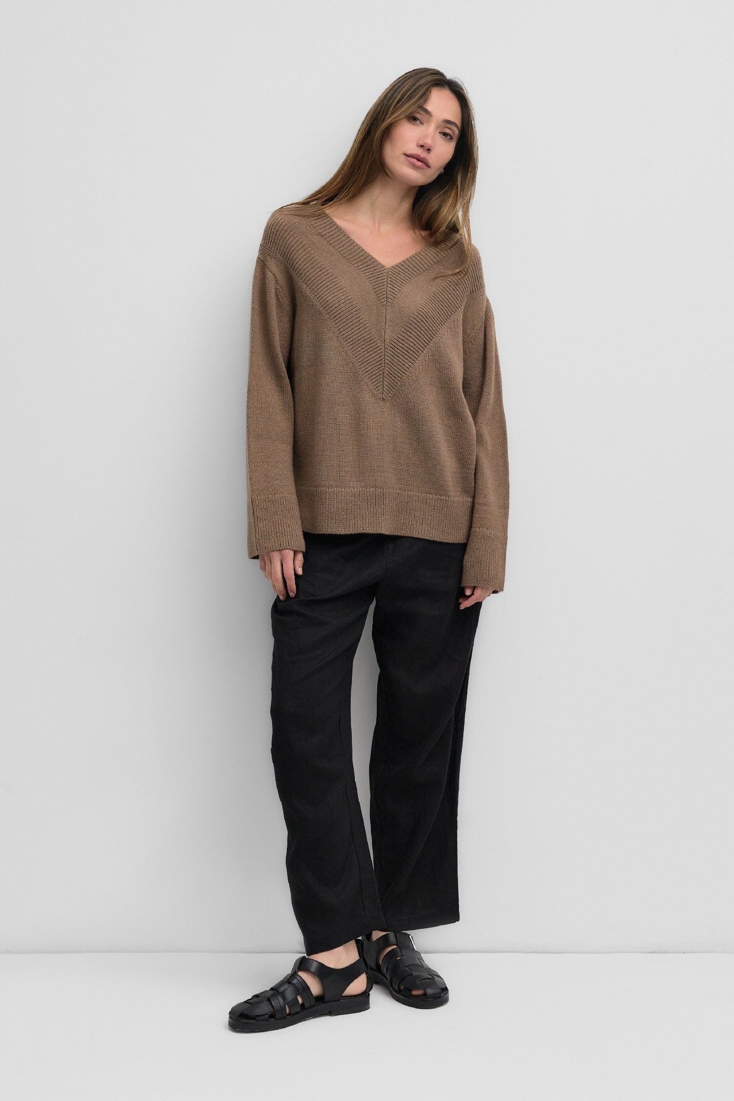 Introducing the Veronica Pullover - the perfect blend of comfort and style. This oversized sweater boasts a ribbed v-neck for added texture and wide sleeves for ultimate comfort. Pair with your go-to denim for a relaxed look, or dress it up with a skirt for a polished ensemble. Versatile and oh-so-cozy.