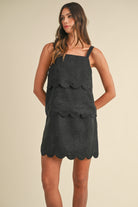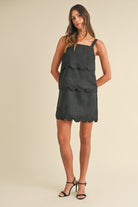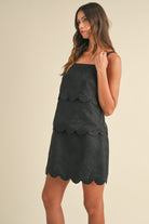 Discover the perfect summer dress with our Zillow Textured Mini. This sleeveless dress features a beautiful floral print, scallop hemline, and tiered design for a flirty look. A back ribbon bow adds a charming touch, while the invisible zipper and lining provide a comfortable fit. Upgrade your wardrobe with this must-have dress now.