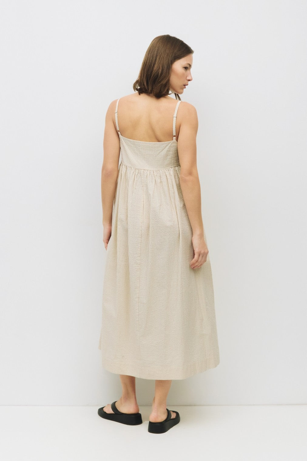Crafted from lightweight seersucker fabric, the Ellis Dress is designed for effortless style. The relaxed fit and V-neckline flatter any body type, while adjustable straps provide a customizable fit. The baby doll hem adds a feminine touch, making this dress perfect for any occasion.