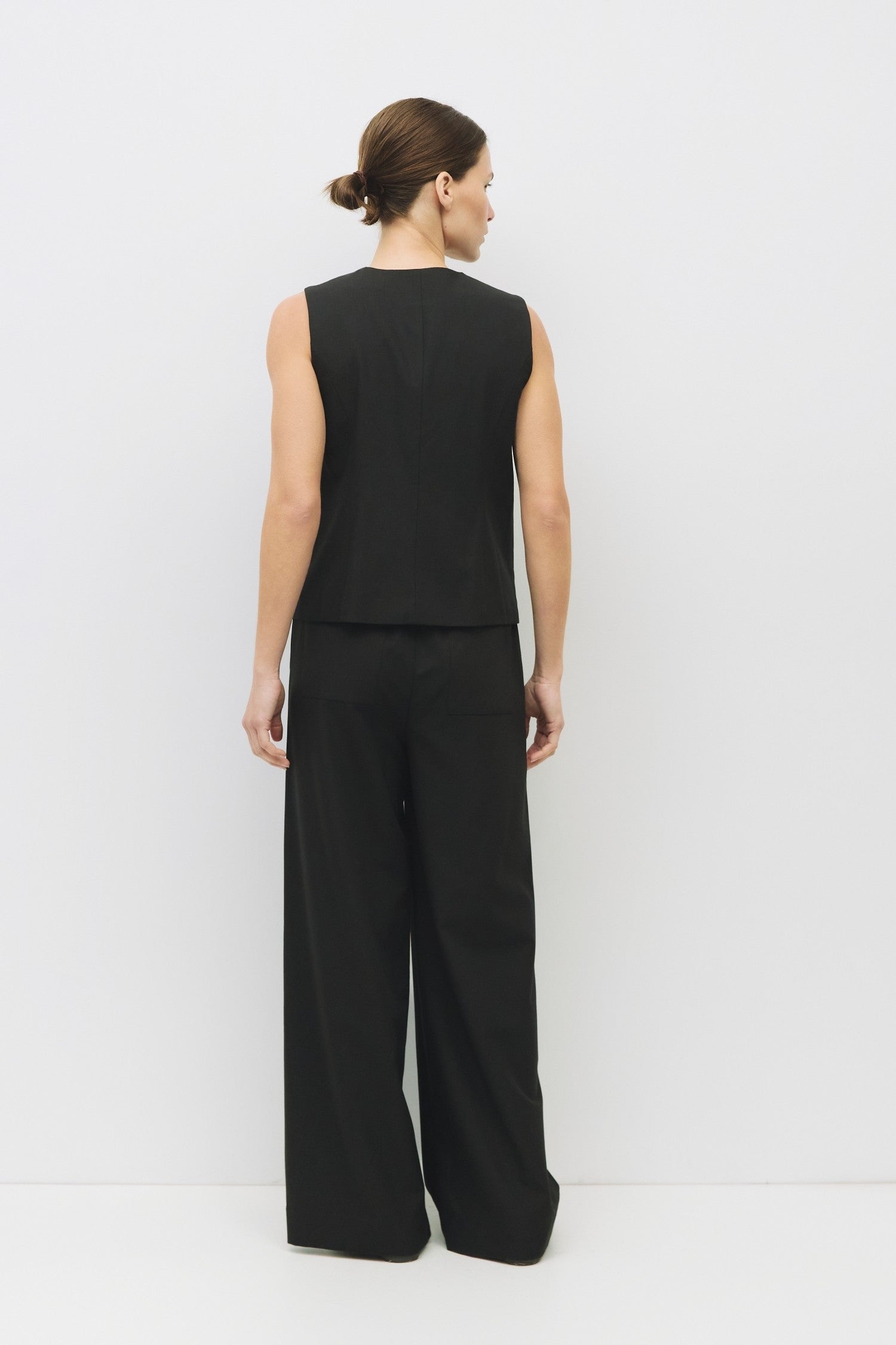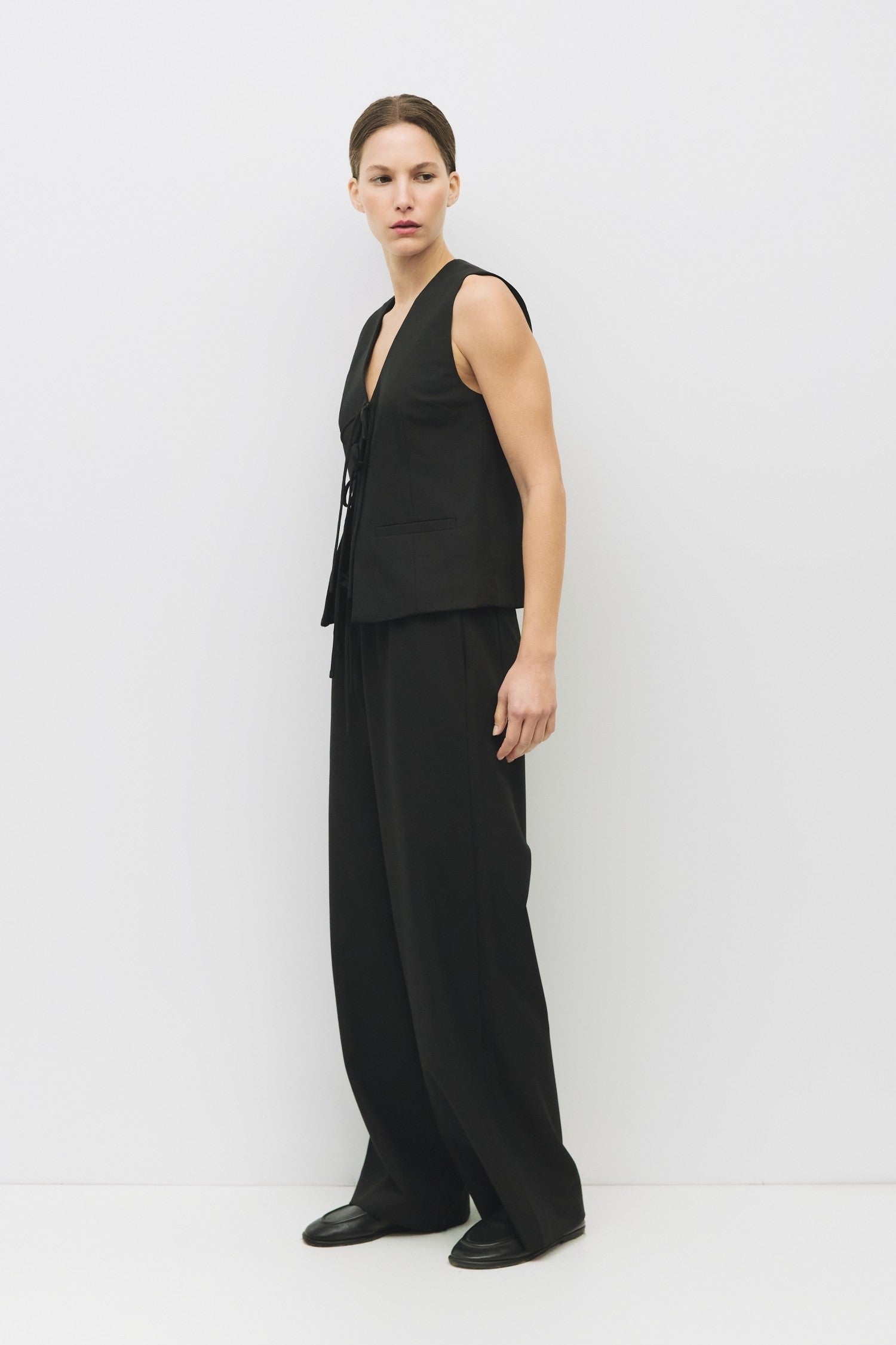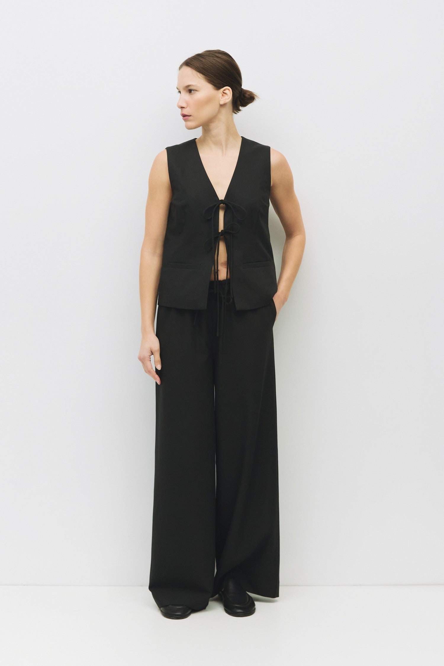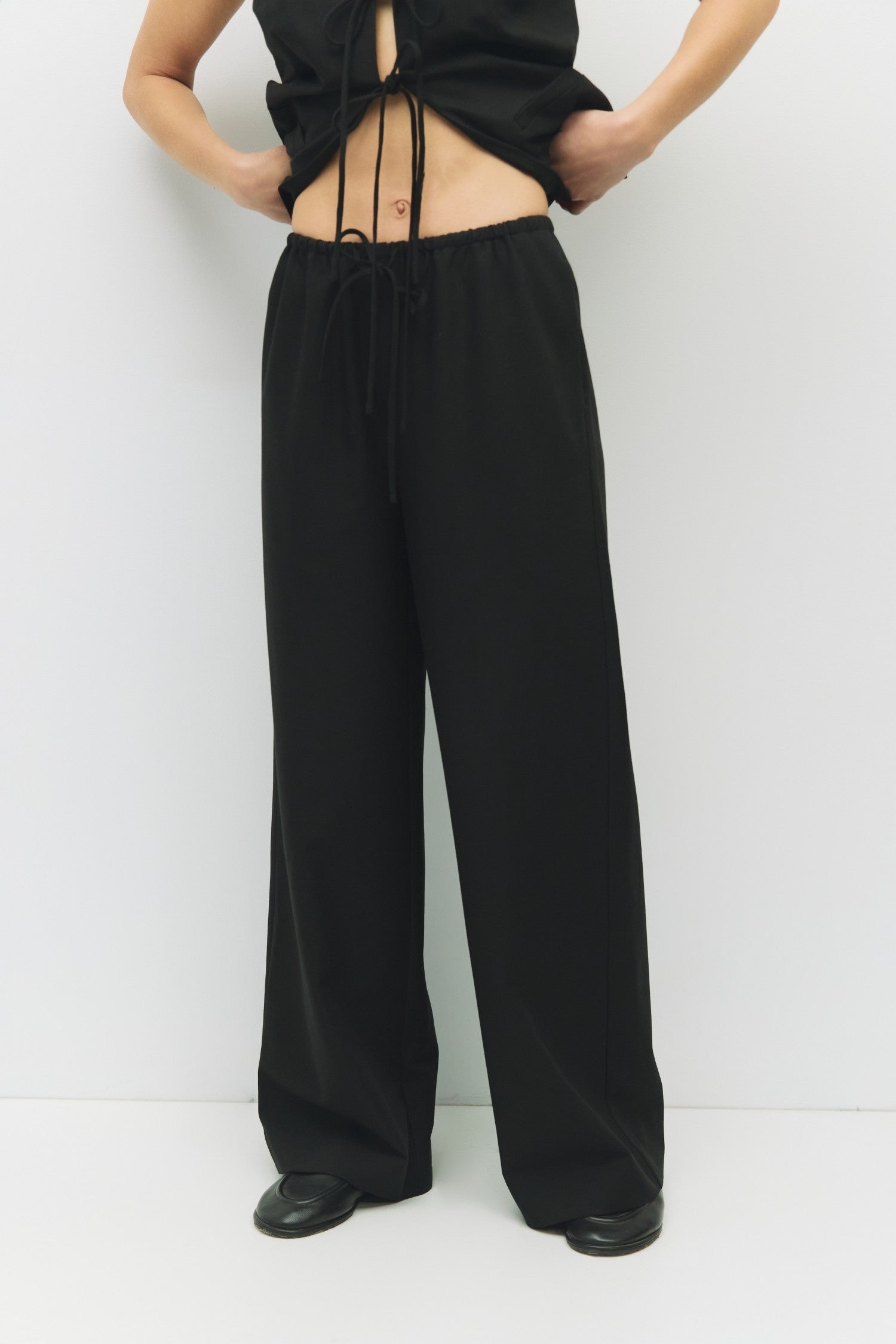 Expertly crafted, Sasha Trousers offer a relaxed, wide-leg silhouette and an elasticized waistline for all-day wear without sacrificing style. The delicate front ties, side pockets, and back patch pockets add functionality to these full-length pants. Embrace comfort and fashion with Sasha.