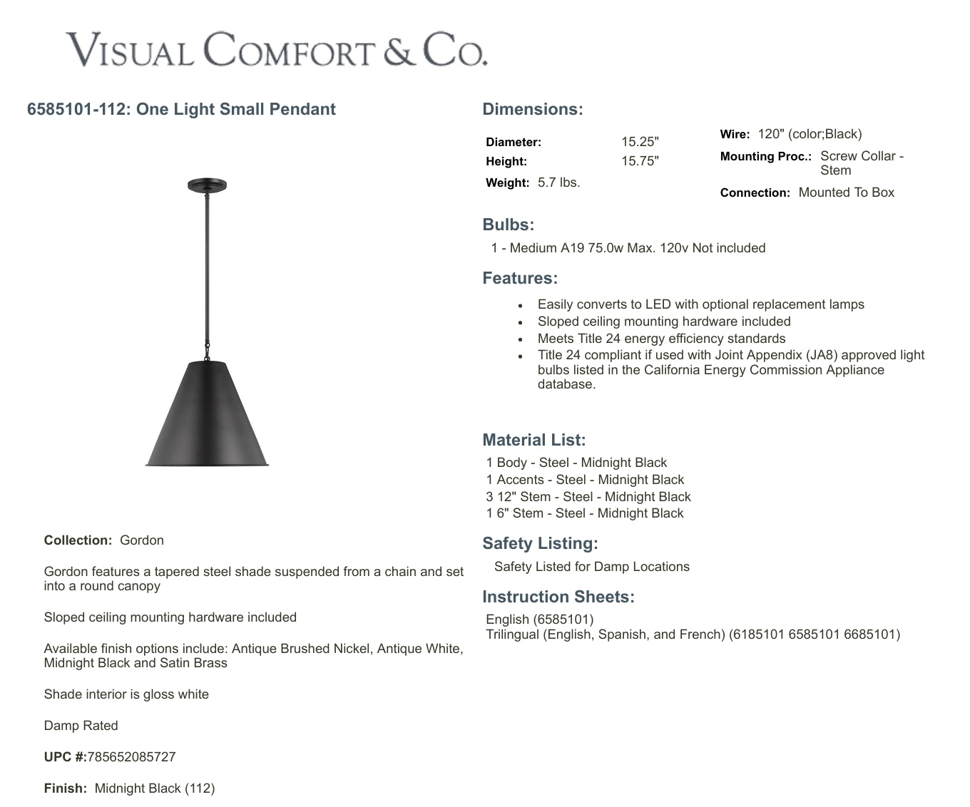 The Gordon contemporary pendant is offered in the Satin bronze, Midnight Black, Antique White, or Antique Brushed Nickel finish. Elegant in its sheer simplicity, and modern in design, this fixture diffuses a soft, warm glow through an understated metal canopy that focuses light only where it's needed most. The cone shape and modern finishes are an on-trend way to elevate any environment.