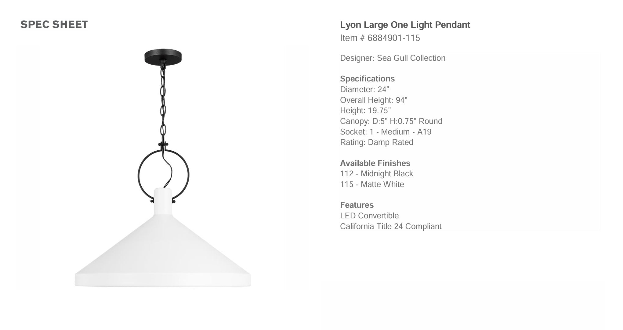 The Lyon one light indoor pendant in matte white supplies ample lighting for your daily needs, while adding a layer of today's style to your home's décor.