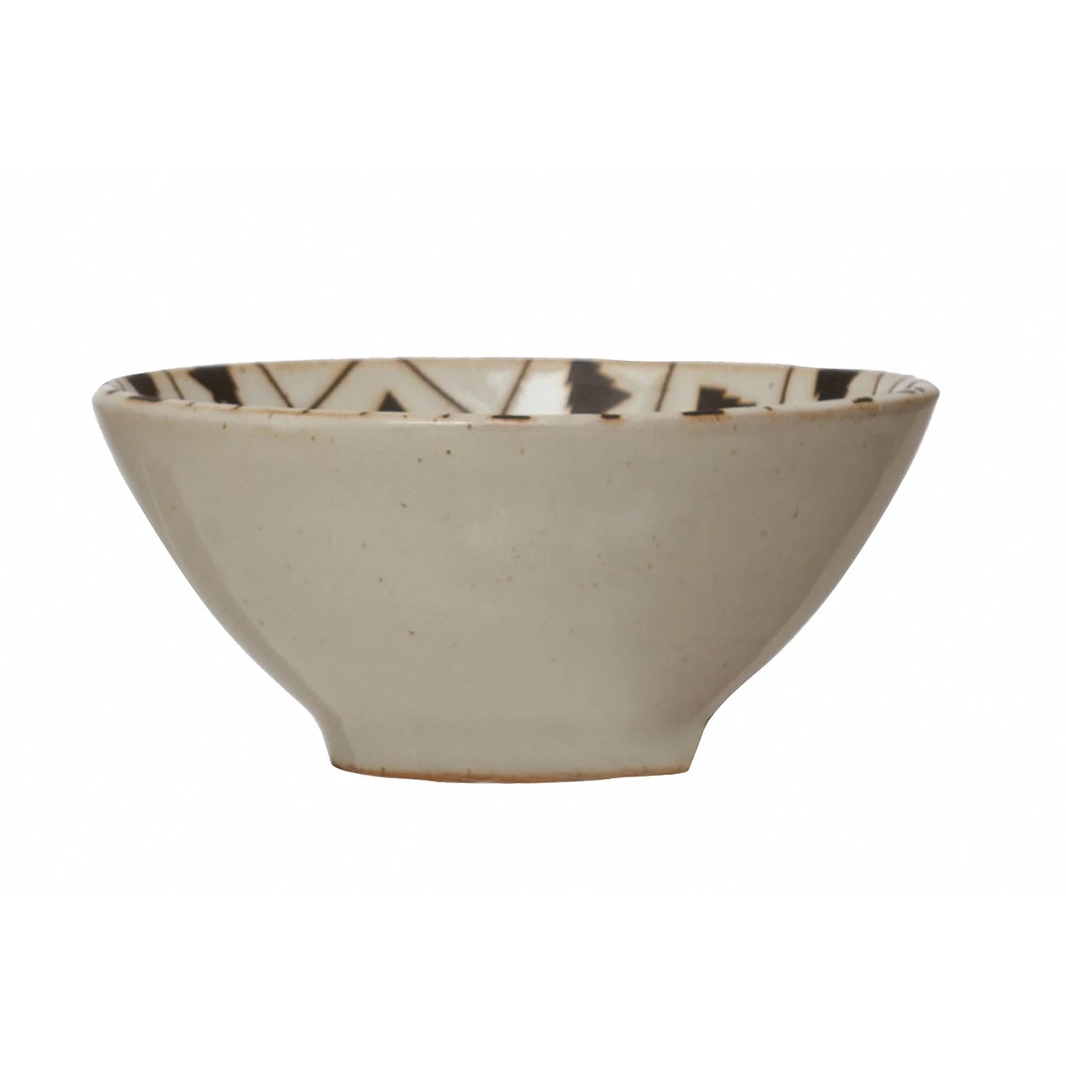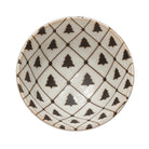 This 3-1/2" round stoneware mini bowl features a distinctive tree pattern enhanced by a reactive glaze in white and black. Standing 1-3/4" high, this piece combines fine craftsmanship with functional design. The reactive glazing process ensures each bowl showcases unique variations, making every piece a subtle work of art perfect for small servings or decorative accents.