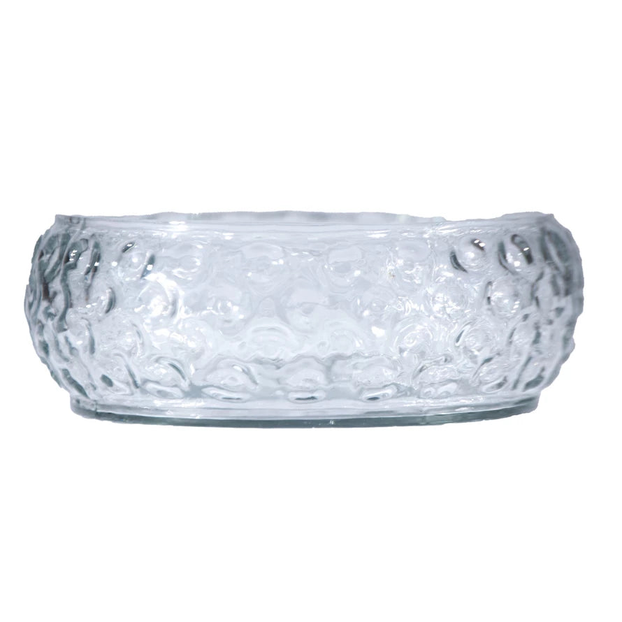 Handcrafted using traditional glassblowing techniques, this inverted hobnail bowl showcases distinctive textured dimpling across its surface. The generous 6-inch diameter and 2-inch height make it ideal for displaying small decorative objects, serving nuts or candies, or adding visual interest to shelving. Each piece is individually made, ensuring subtle variations that celebrate the artisanal nature of hand-blown glass. The classic hobnail pattern creates dynamic light play while maintaining an elegant, timeless aesthetic suitable for contemporary or traditional interiors.