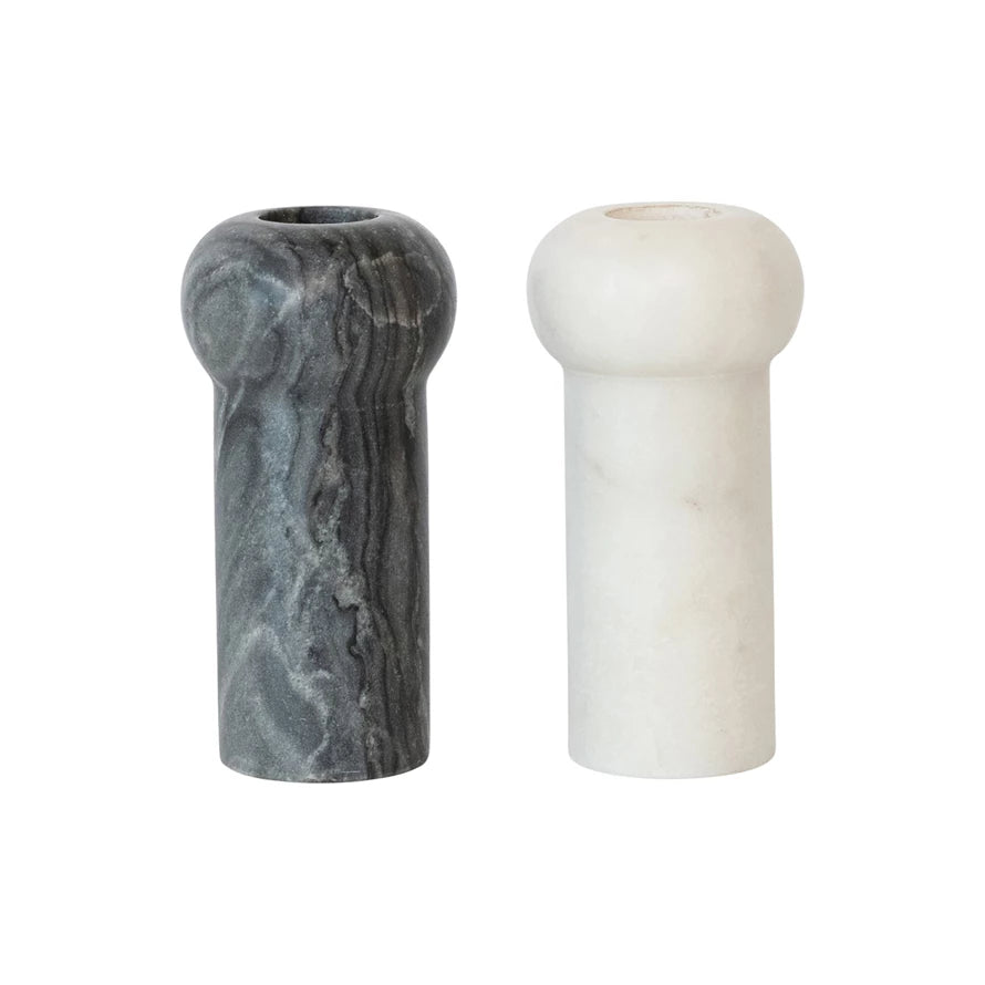 Elevate your table setting with this sophisticated marble taper holder, crafted to accommodate standard taper candles with refined elegance. Measuring 2 inches in diameter and 4 inches in height, this piece combines functional design with natural stone beauty. Available in two complementary marble finishes, it seamlessly integrates into any décor aesthetic—from minimalist modern to classic traditional. The weighted base ensures stability while displaying your favorite tapers, making it an essential accent for both everyday dining and special occasions.
