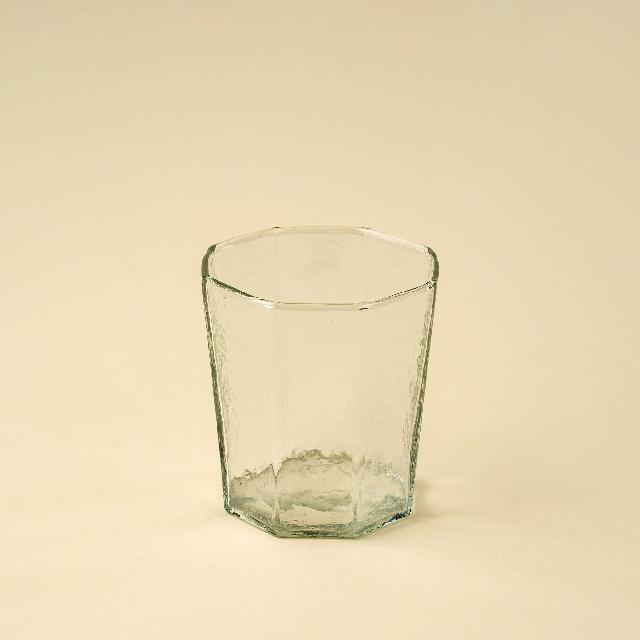 Made from eco-friendly recycled glass, this handcrafted drinking glass combines practicality with artisanal beauty. The clean lines and prism design make it versatile for any table setting.