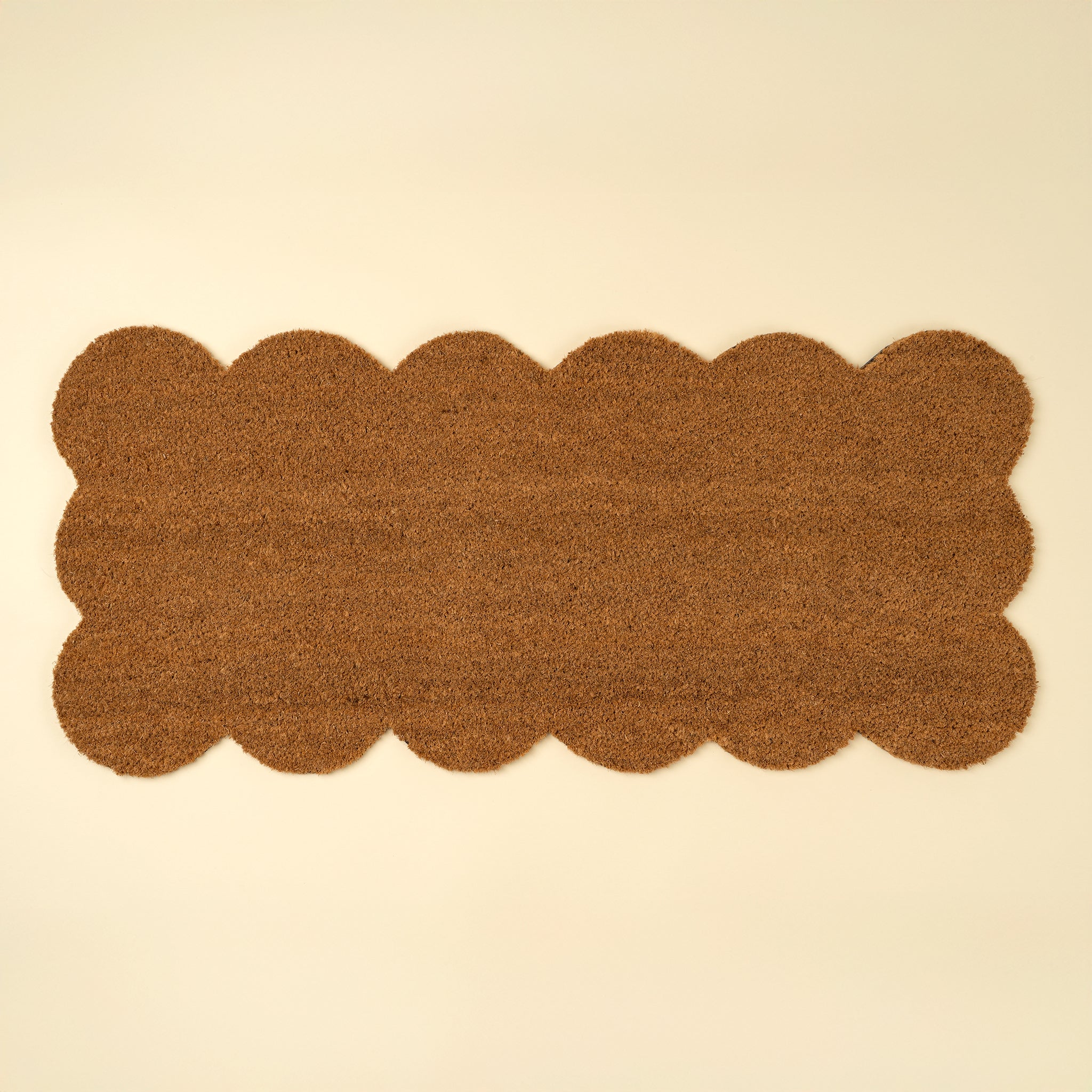 Greet visitors with understated elegance using this Scalloped Doormat. Constructed from sustainably sourced coir with a secure PVC backing, it combines eco-conscious materials with practical functionality. The distinctive scalloped edge delivers a refined feminine touch that elevates any entryway aesthetic. Measuring in the large size, this durable mat withstands regular foot traffic while maintaining its natural texture. Ideal for front doors, patios, and covered porches, it serves as both a welcoming accent and a reliable first line of defense against dirt and moisture. Simple maintenance—occasional brushing keeps it looking fresh season after season.