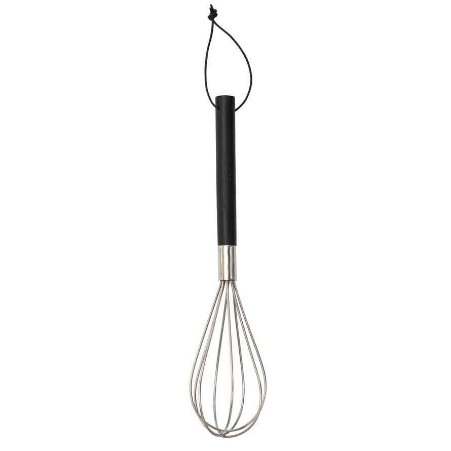Dimensions: 11-1/4"L x 2-1/4"W Stainless Steel Whisk w/ Mango Wood Handle & Leather Tie, Black