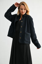 The Shilo Sherpa Jacket merges understated elegance with practical warmth. Featuring a plush sherpa and structured button-front design, this piece offers refined layering for unpredictable weather. The tailored silhouette works equally well over fitted basics or relaxed separates, making it a versatile addition to any wardrobe. Built for durability and comfort, it transitions seamlessly across seasons and occasions. An investment piece that delivers both style and substance.