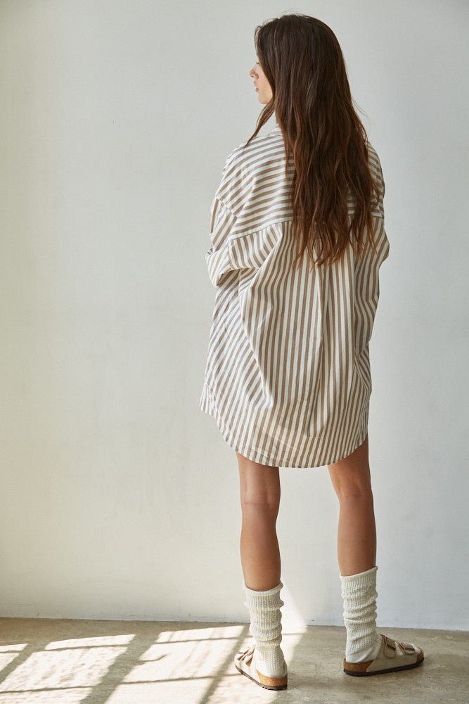 Bristow Striped Button Down- Taupe