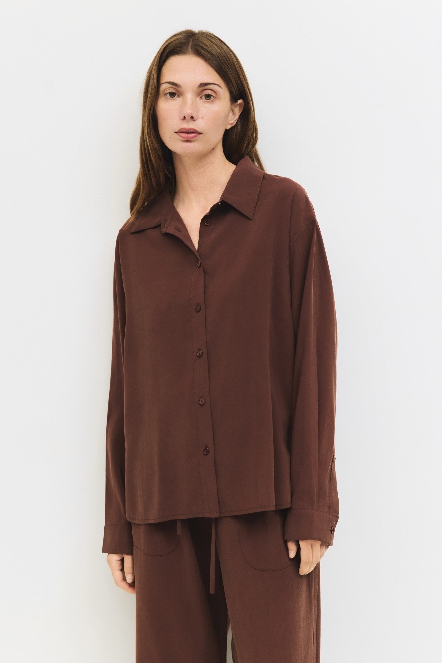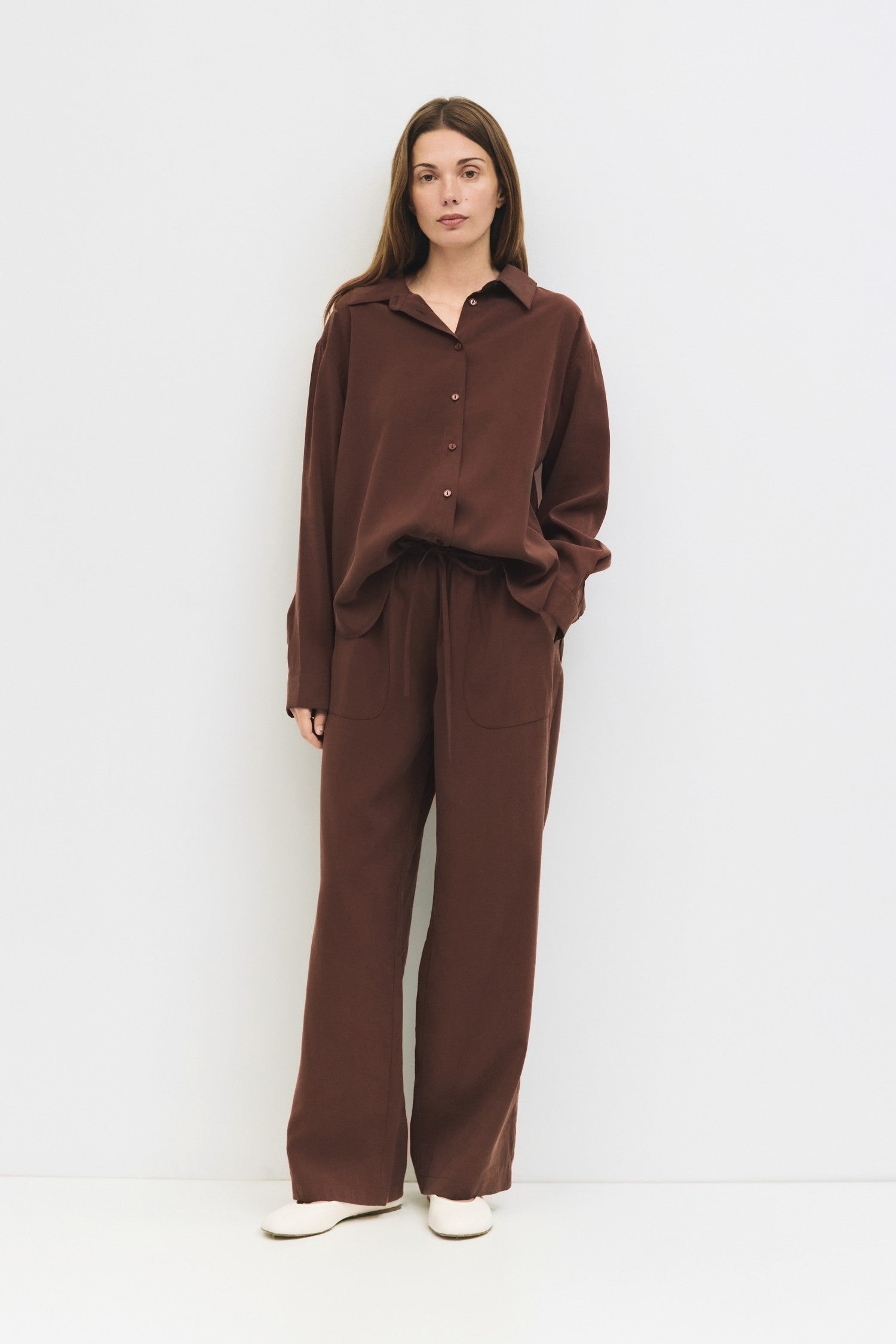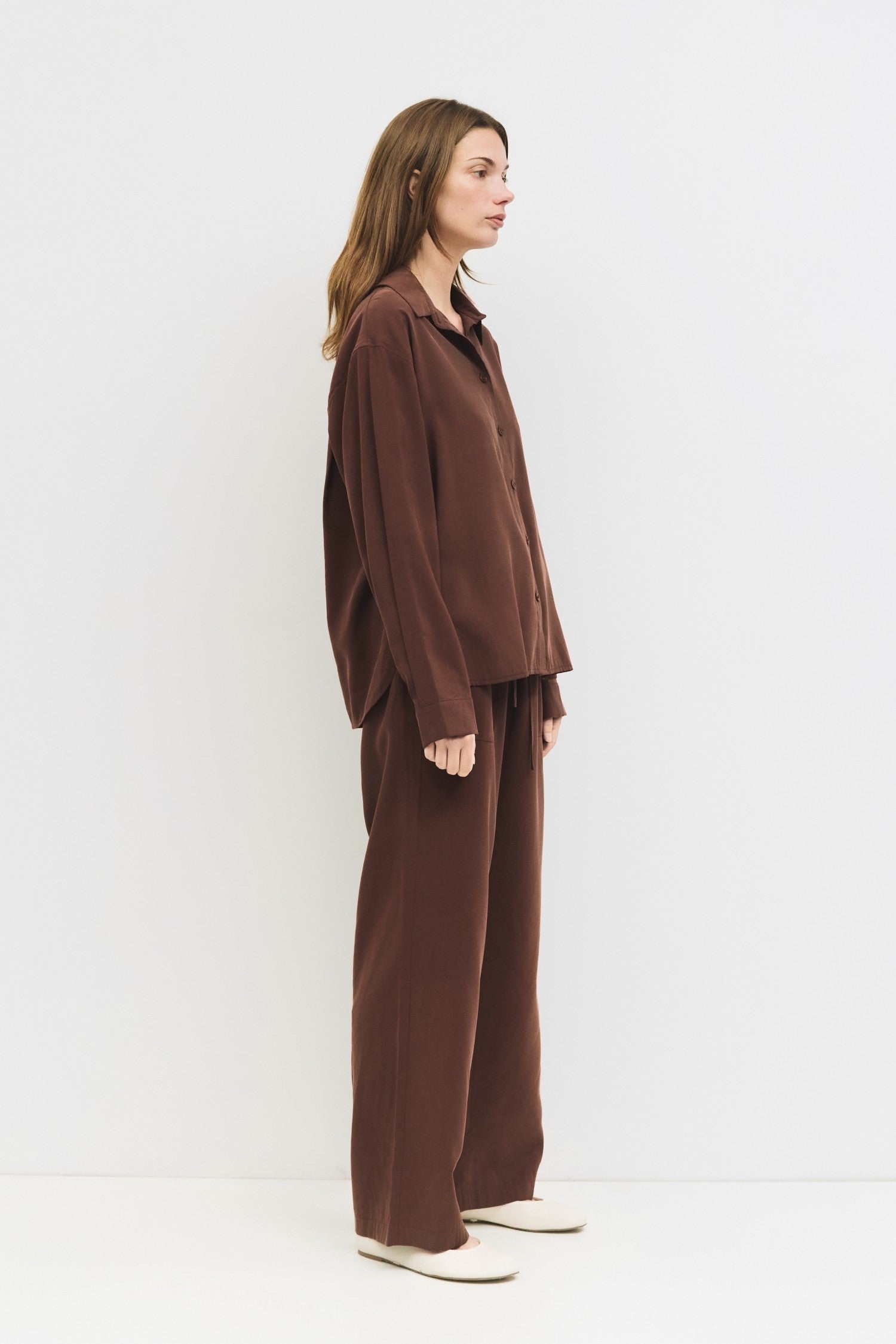 The Ellis Button Down offers a relaxed fit and lightweight fabric designed for all-day comfort and effortless style. Its versatile design ensures it pairs seamlessly with The Ellis Pants, creating a cohesive, comfortable monochromatic outfit ideal for everyday wear. Perfect for those who value both ease and polished simplicity in their wardrobe.