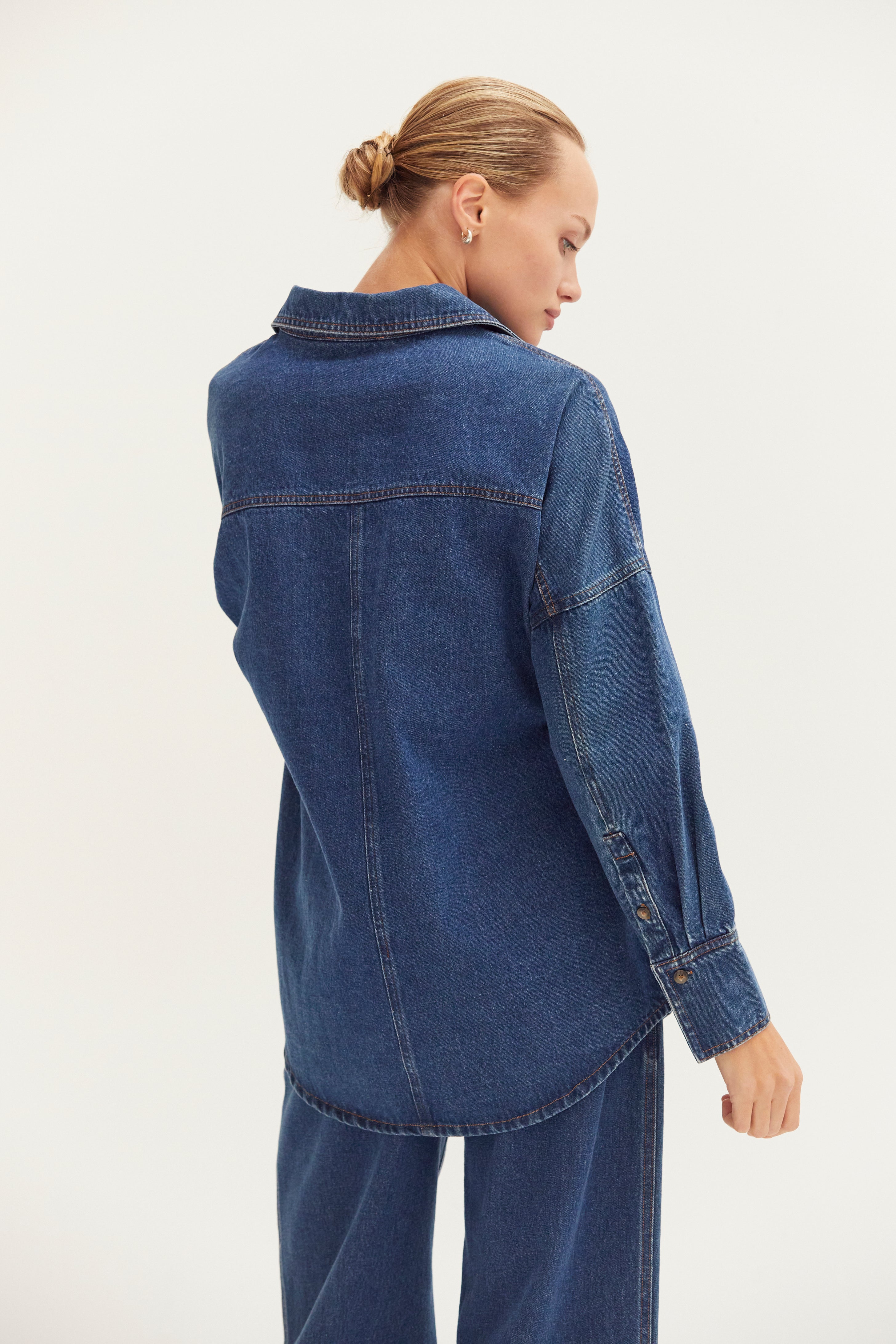 Crafted from 100% cotton, the Gianna Denim Button Up offers breathable comfort and natural durability. Its classic button-up design ensures a polished look, while the quality denim fabric provides a timeless, versatile style suitable for layering or wearing alone. Ideal for those seeking a blend of functionality and enduring fashion.