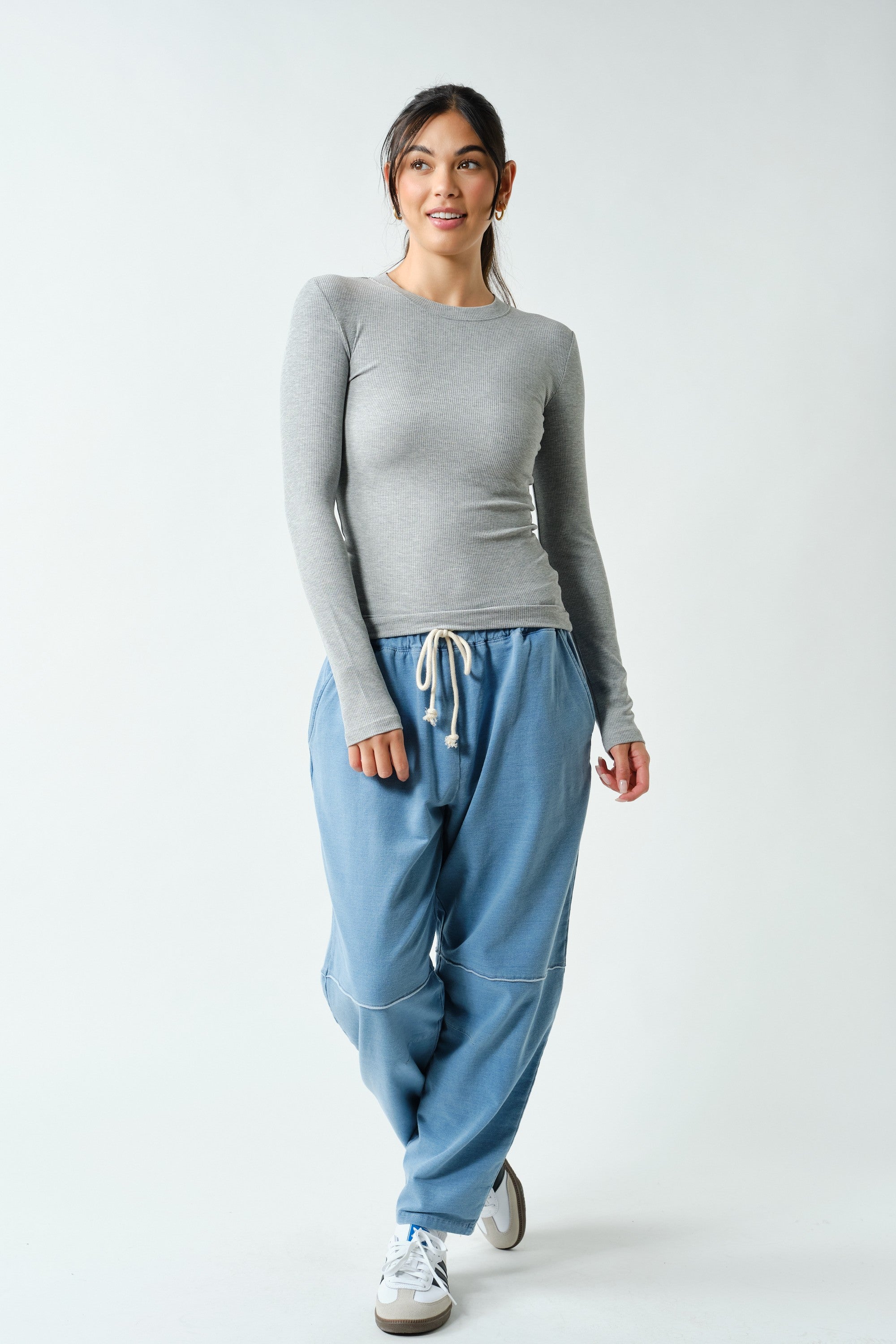 Essentials Ribbed Long Sleeve offers effortless versatility for any season. Pull down the sleeves when temperatures drop, or push them up for warmer days. Pair it with leggings for an outdoor adventure or style it with a pencil skirt for a polished, semi-formal look. The ribbed fabric provides a flattering fit that transitions seamlessly from casual to dressy, making it a wardrobe staple you'll reach for again and again.