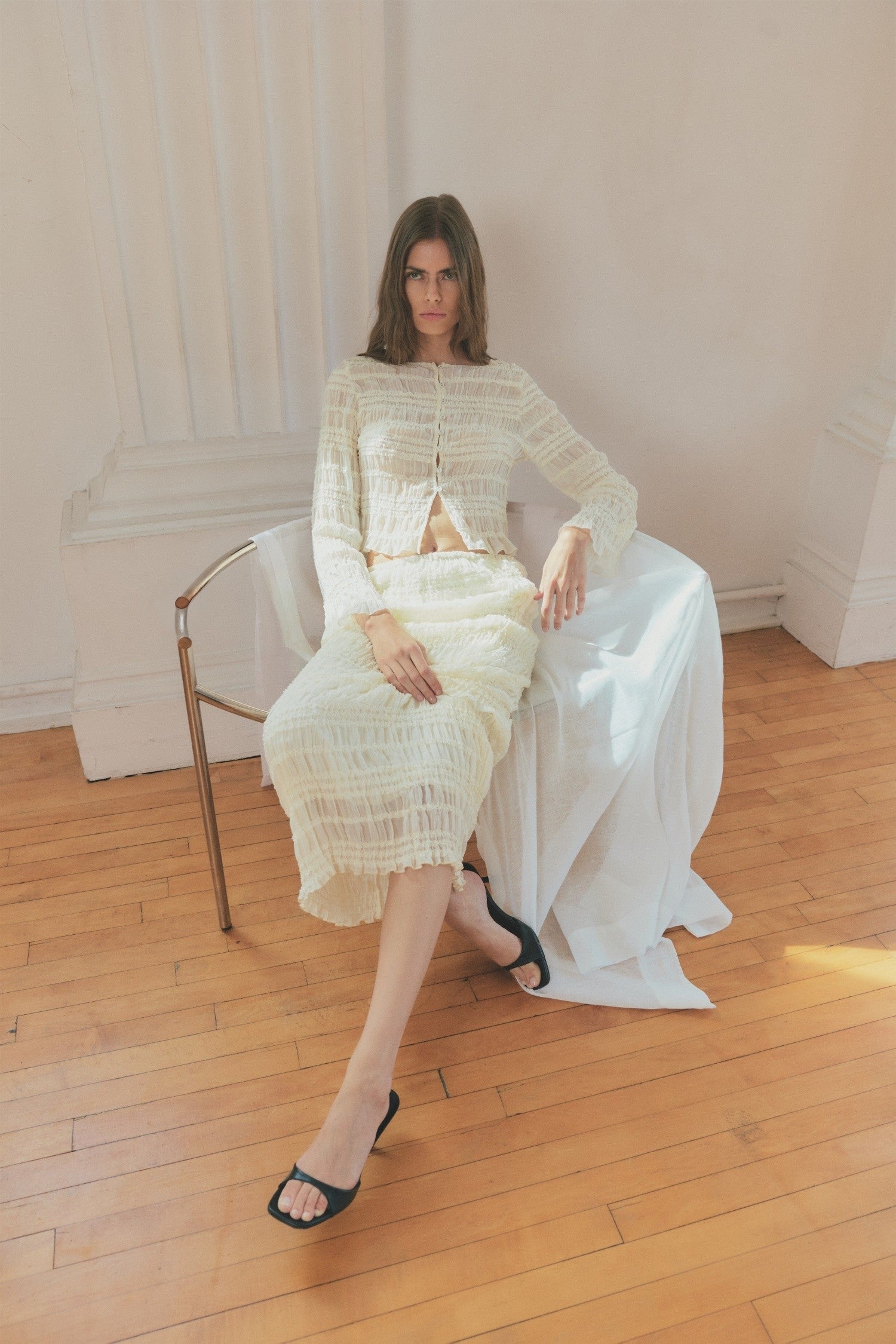 The Hoda Top features delicate smocked detailing across a lightweight chiffon construction, creating elegant texture and subtle volume. This versatile piece pairs seamlessly with its matching skirt for a coordinated, polished look. The breathable fabric drapes beautifully while the smocking provides structure and visual interest. Perfect for layering or wearing as a standalone piece, this blouse transitions effortlessly from casual to refined occasions.