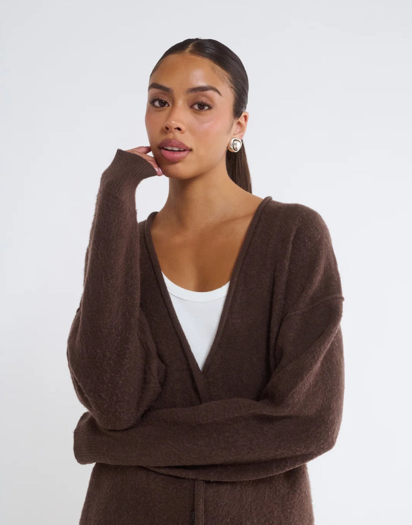 Effortlessly versatile, this longline cardigan delivers the relaxed silhouette that defines transitional dressing. Its generous proportions make it ideal for layering during those unpredictable shoulder seasons when temperatures fluctuate throughout the day. The extended length provides coverage and movement, while the slouchy fit pairs seamlessly with everything from fitted basics to flowing pieces. A wardrobe essential that bridges the gap between seasons with understated sophistication.