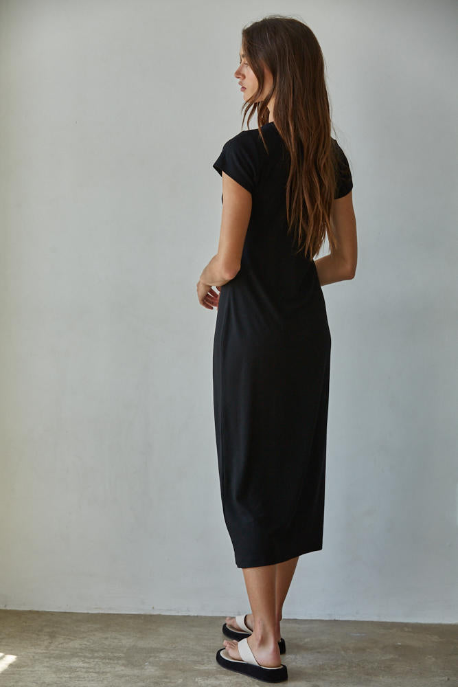 The Lucas Bodycon Knit Dress offers a sleek silhouette crafted from a comfortable blend of rayon and spandex. Featuring a classic round neck and short sleeves, this midi-length dress provides a flattering, form-fitting shape without lining, ensuring breathability and ease of movement. Ideal for both professional settings and evening occasions, it combines style with expert-tailored comfort.