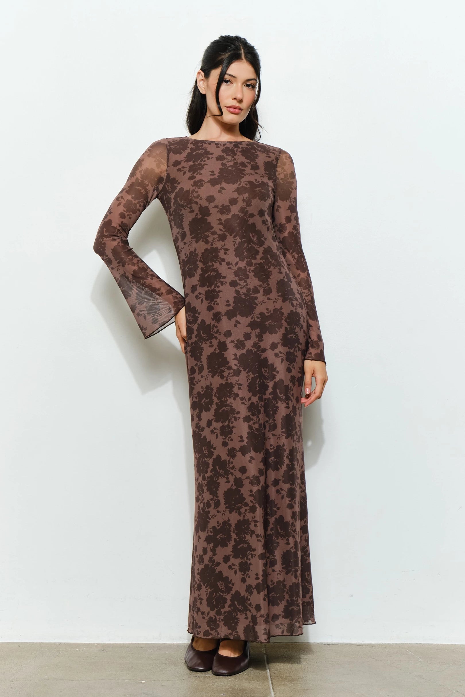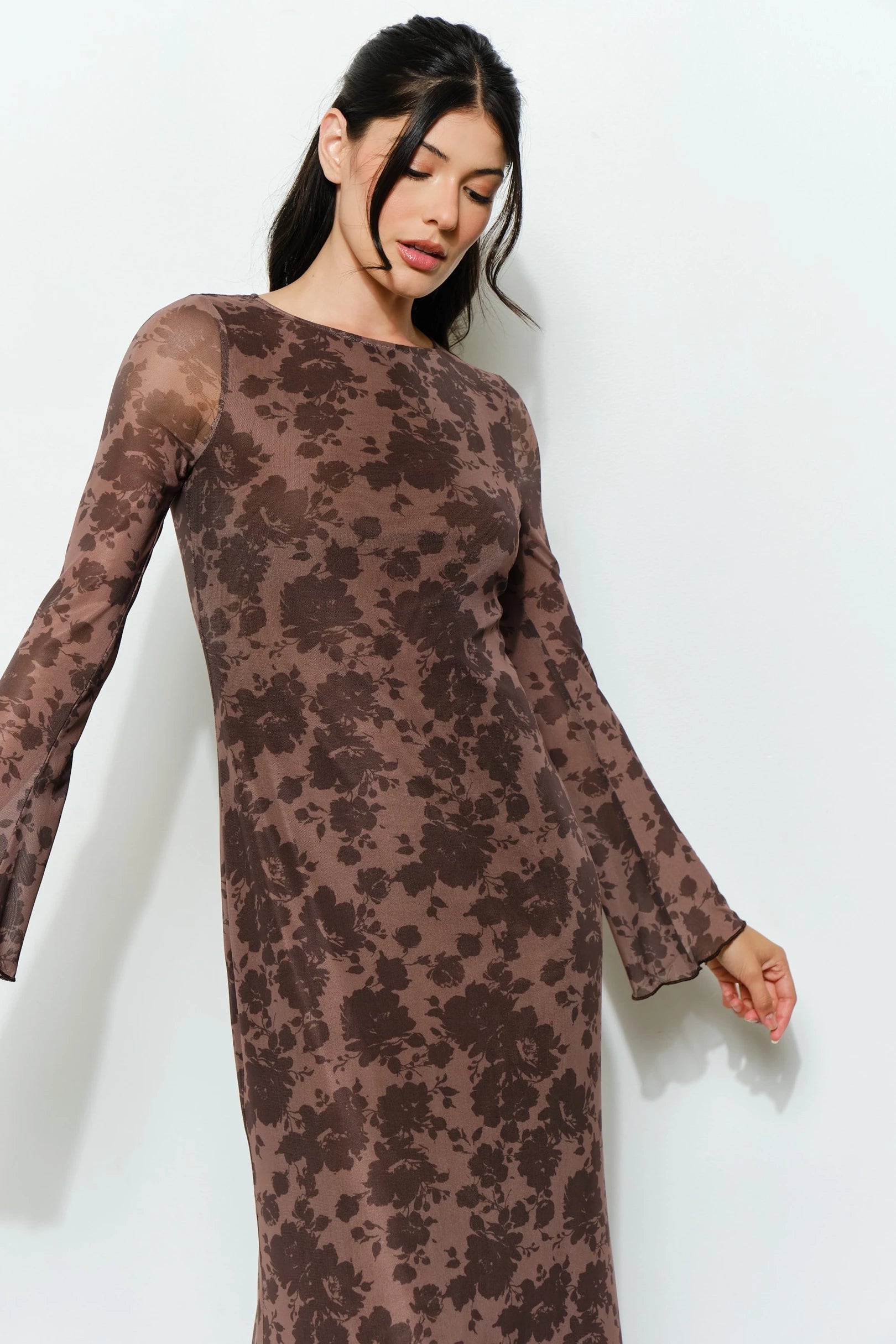 The Meredith Maxi Dress combines contemporary elegance with romantic detailing. Crafted from exclusive floral mesh fabric, this sweeping silhouette features long bell sleeves that move gracefully with you, creating a distinctly boho aesthetic. A keyhole cutout at the back adds modern sophistication without compromising comfort—the lined bodice provides essential coverage while sheer sleeves maintain an airy, ethereal quality. Versatile enough for garden gatherings or evening occasions, this dress delivers effortless style through thoughtful design and premium fabrication.