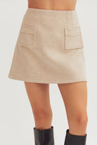 The Rowan Skater Skirt combines timeless design with everyday practicality. Crafted from a wool blend, this mini skirt features a flattering A-line silhouette that moves beautifully with you. Thoughtful construction includes front and back dart detailing for a refined fit, while front patch pockets add both style and function. The fully lined interior ensures comfort throughout the day, and a discreet back zipper closure completes the polished look.