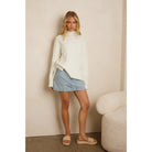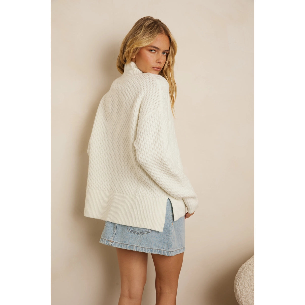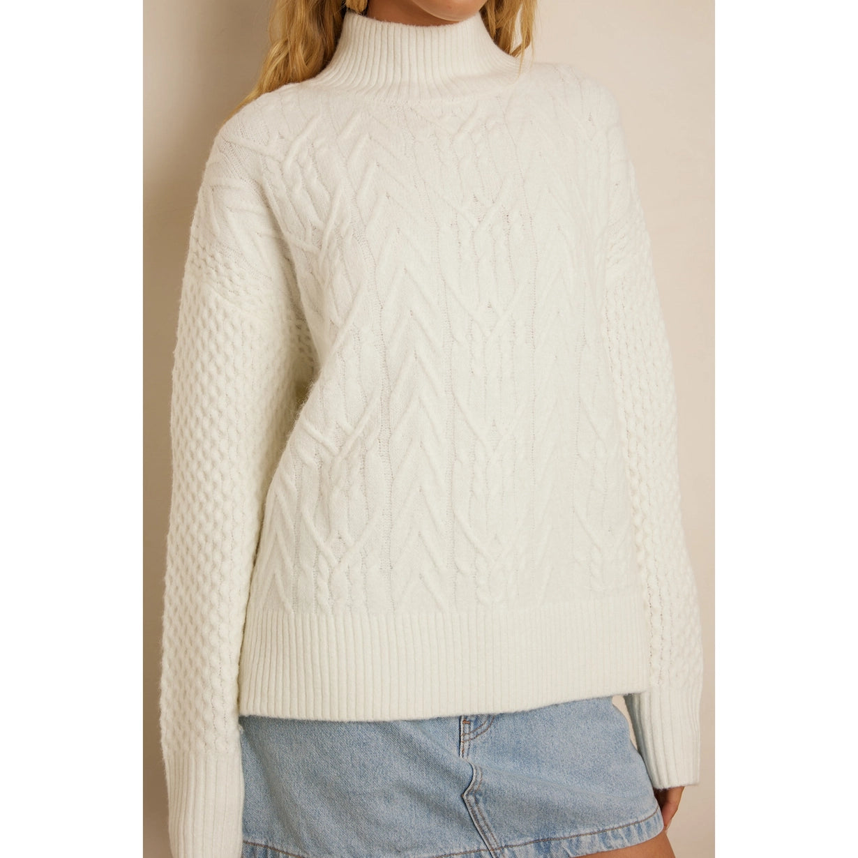 The Zara Pullover combines contemporary styling with practical design. This sweater knit features a refined mock neck and a tunic silhouette with an extended back hem that creates visual interest and flattering proportions. The longer back provides coverage and movement, making it versatile for layering or wearing solo. Crafted with attention to detail, this piece transitions seamlessly from casual to polished occasions.
