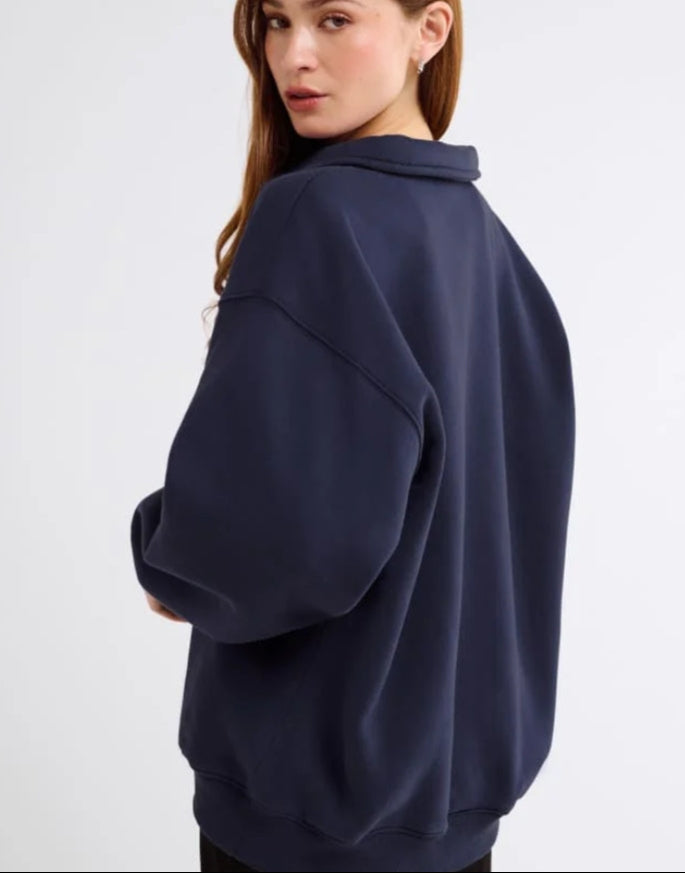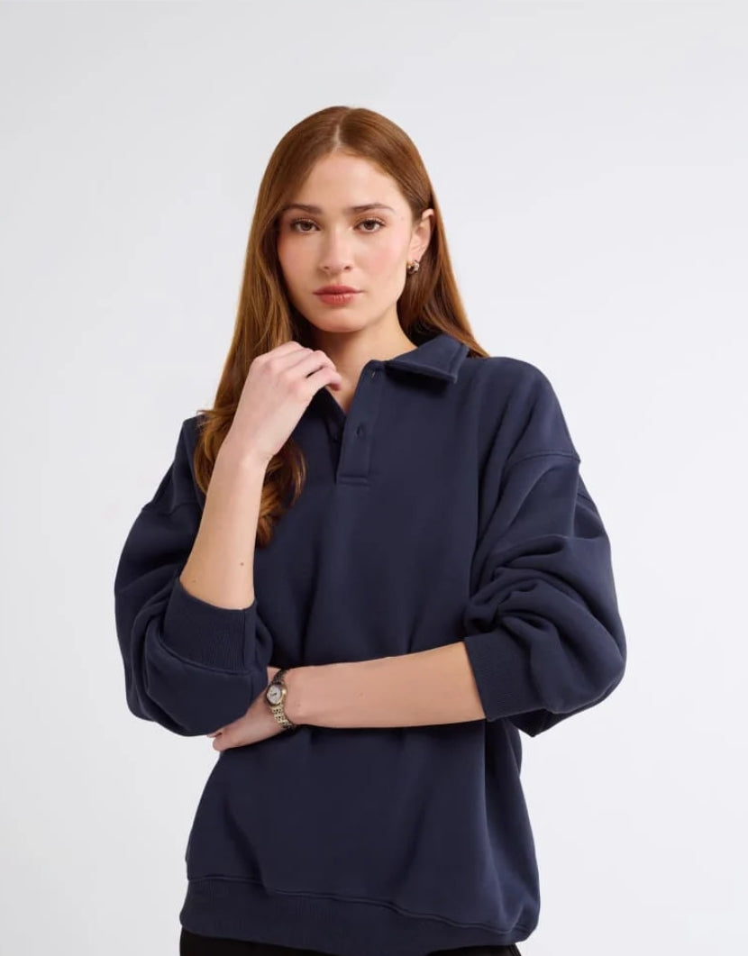 Inspired by vintage menswear and classic fleece pullovers, this oversized layer feels like something you stole from his closet—and never have to give back. The kind of sweatshirt you toss on for early morning flights, long drives, or lazy Sundays spent doing nothing at all.