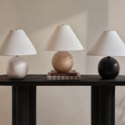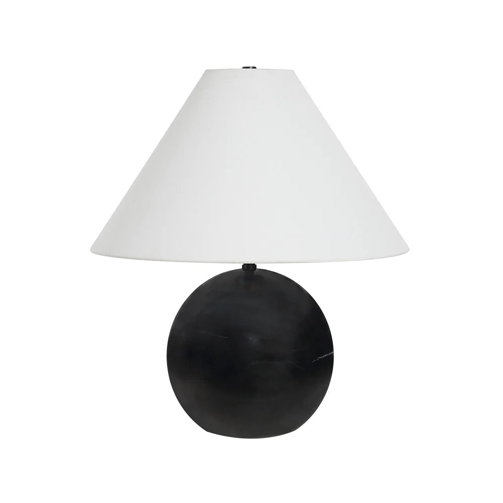 The Arlo Table Lamp in Black Marble brings sophisticated contrast to any room. Its honed marble base in deep black tones provides a striking foundation that complements contemporary and classic interiors alike. The generously scaled tapered cream linen shade pairs beautifully with the matte black fitting, creating visual balance while delivering warm, inviting light. Dimmable functionality allows you to adjust the ambiance to suit your mood and needs. Whether displayed individually or positioned as a matching pair for enhanced layering, this lamp makes a refined statement that transcends trends. Includes bulb. Each one will vary due to the natural stone.