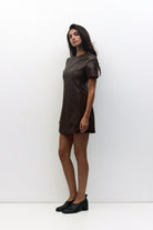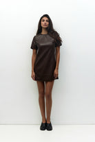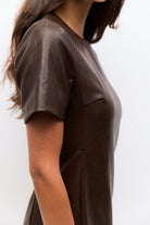 The Becky Leather Mini combines contemporary design with practical comfort. This fitted mini dress features premium smooth faux leather that delivers a polished, modern aesthetic without compromising on wearability. The crew neckline and short sleeves create a versatile silhouette suitable for various occasions, while the partial center back zipper adds an edgy detail and ensures easy dressing. Complete with full lining for comfort against the skin, this piece transitions effortlessly from day to evening wear.