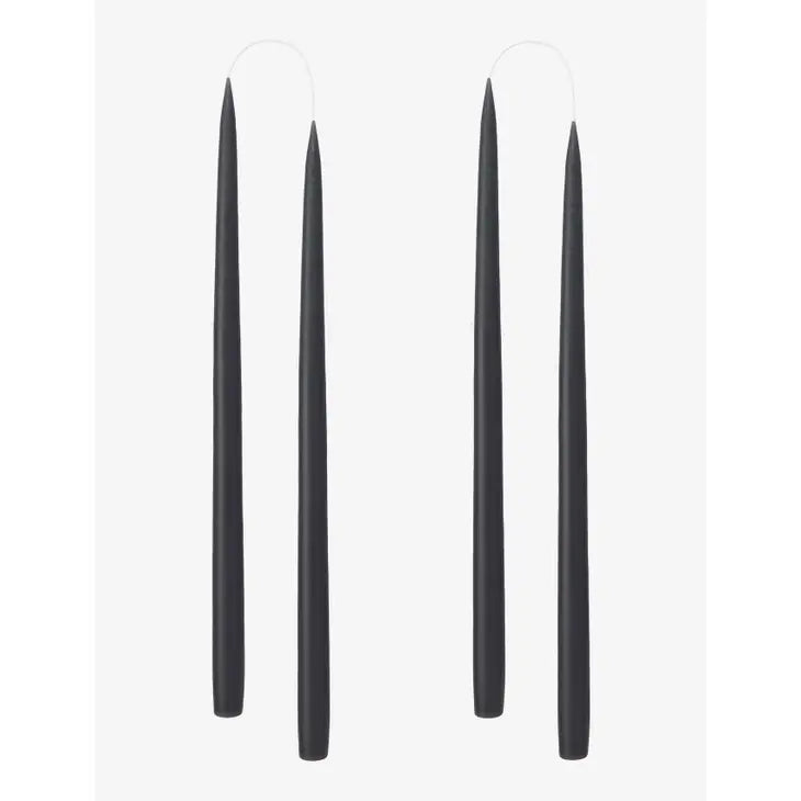 Twilight Collection Danish Tapers Candles are produced in Denmark and carry on the long tradition of the original candle shape made and admired since ancient times. They are dipped by hand, producing the finest taper candles which are made to burn smokeless, scentless, dripless and with a very elegant flame in still air.