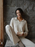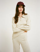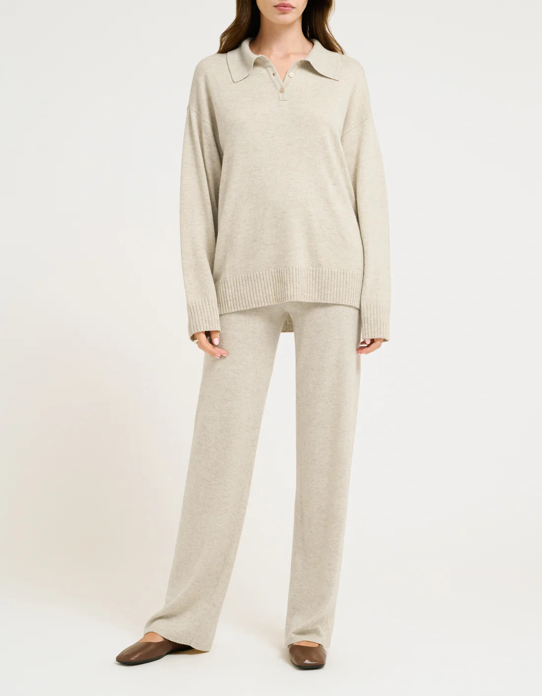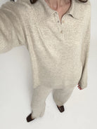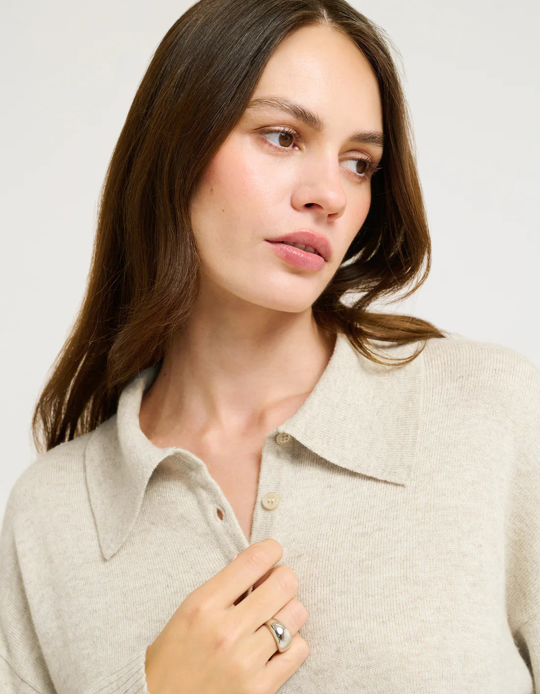 The Dune Sweater takes the laid-back silhouette of our Delancey and refines it with a henley collar and tortoiseshell buttons. Crafted from a super-soft cashmere blend, it’s designed with dropped shoulders and an easy, oversized fit. Finished in oatmeal heather, this is the sweater that bridges comfort and polish—made to slip into your everyday rotation.