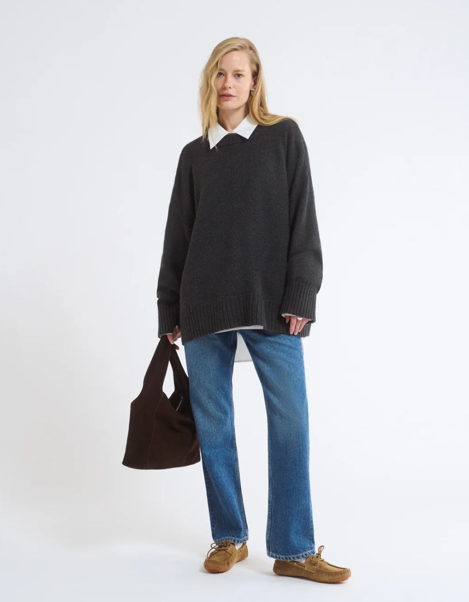 Enter your soft girl era. Our latest, lightweight take on the minimal, oversized sweater you love features the same extra long sleeves and a softer brushed fabric. Made to wear and layer with everything.