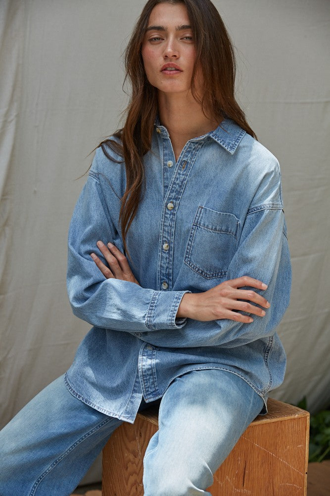 Crafted from 100% woven cotton denim, the Harrison Denim Button Down offers durability and breathability for everyday wear. Its long sleeves and classic button-down design provide a timeless silhouette, while the front pocket adds practical functionality. Ideal for layering or wearing alone, this shirt combines comfort with a refined rugged style suitable for both casual and professional settings.