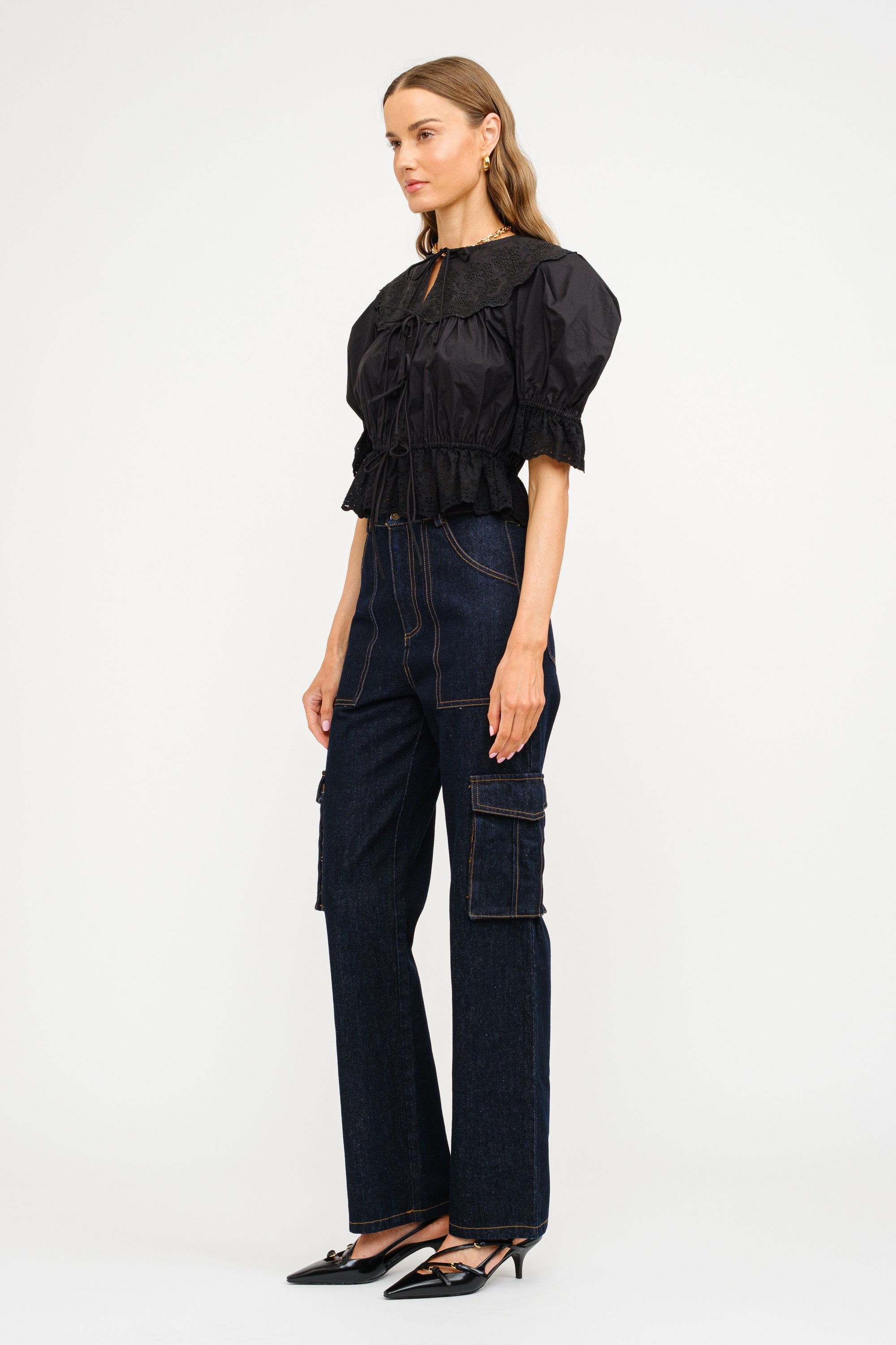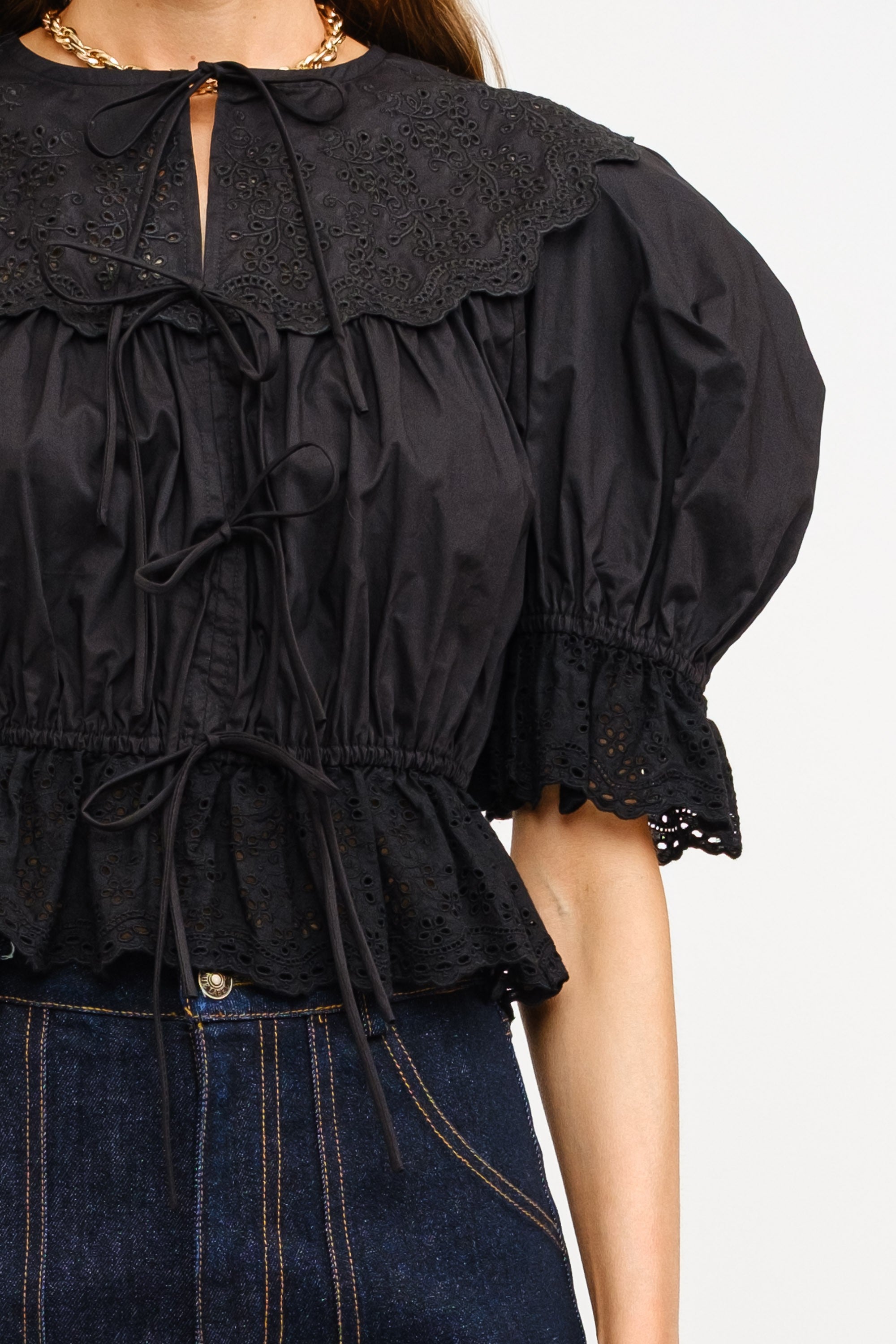 Discover the exquisite craftsmanship of the Isabel Blouse. Featuring delicate embroidery and front ties, this short sleeve blouse exudes elegance and sophistication. Made with high-quality materials, this blouse is perfect for both casual and formal occasions. Upgrade your wardrobe with the Isabel Blouse today.