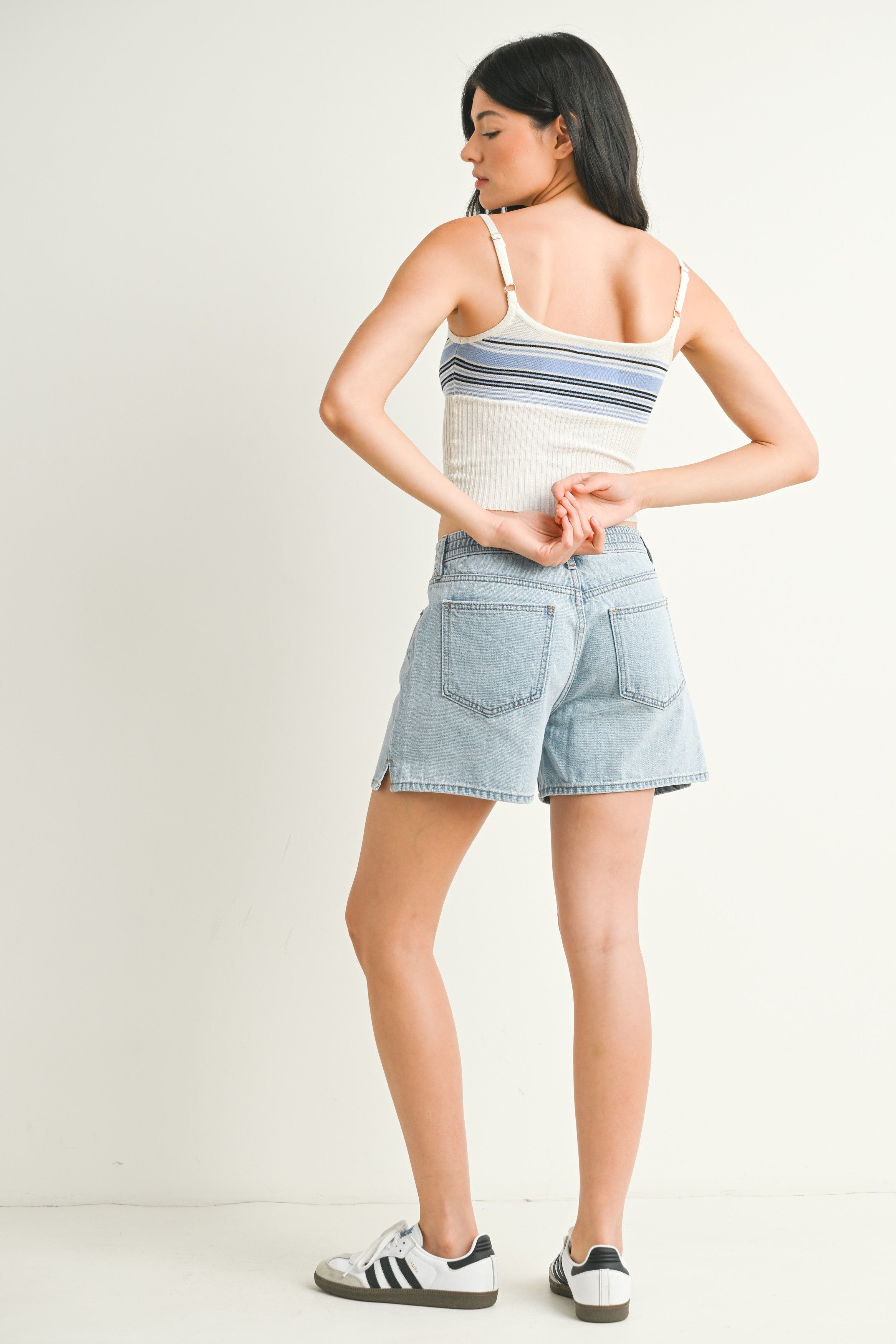 Experience comfort and style with our Jodi Elastic Mom Shorts. Featuring a high-rise waist and elastic waistband, these shorts offer a relaxed fit and flattering silhouette. The soft denim wash adds a fresh, easygoing vibe, making them a must-have for sunny days and casual outings.