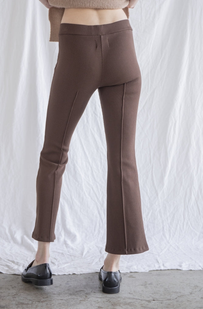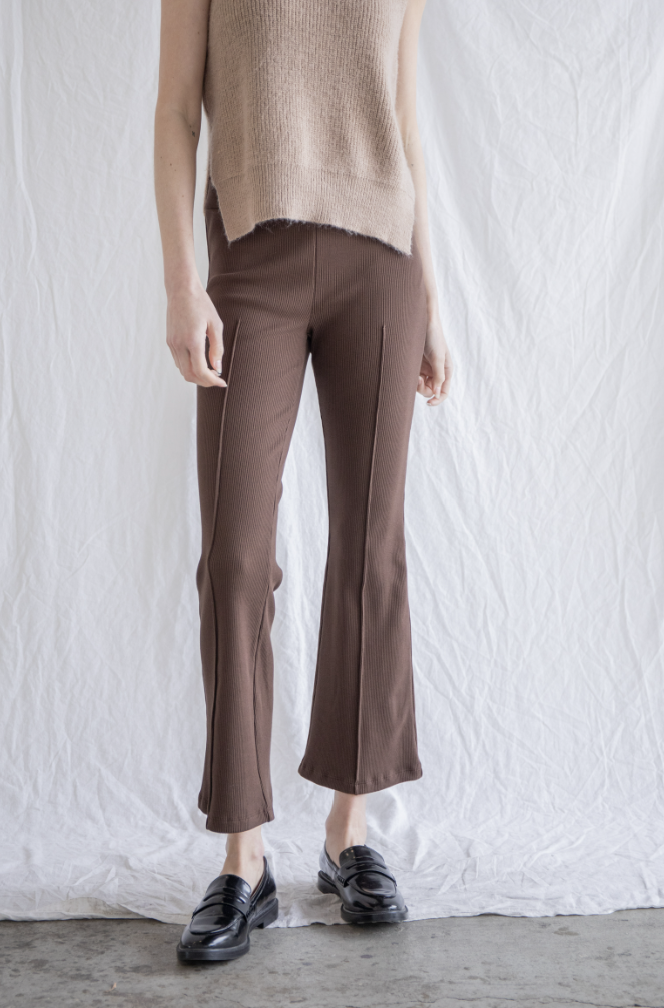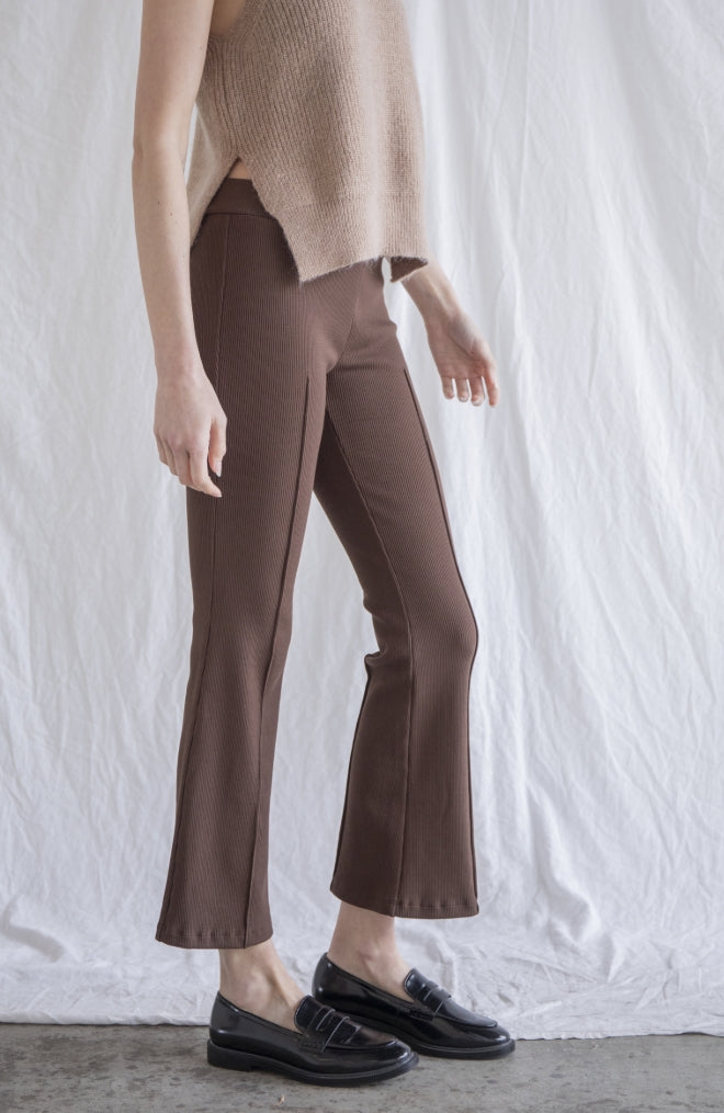 Elevate your wardrobe with our Jody Ribbed Crops in rich chocolate. These trousers are crafted with a ribbed design, elevating your style and creating a sleek silhouette. Perfect for both a casual day out or a professional setting, these trousers are a must-have staple for any fashion-forward individual.