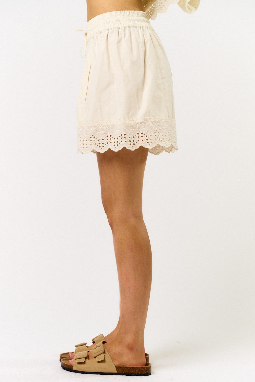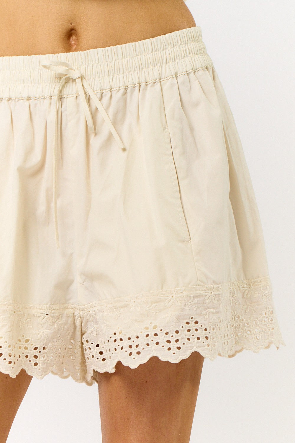 Designed for comfort and style, Judy Lace Shorts feature an elastic waistband for the perfect fit and an adjustable front tie for added convenience. The eyelet lace edge and detail hem add a touch of elegance to these versatile shorts.