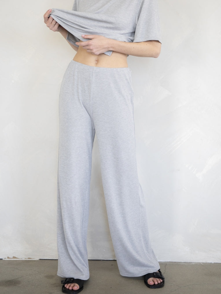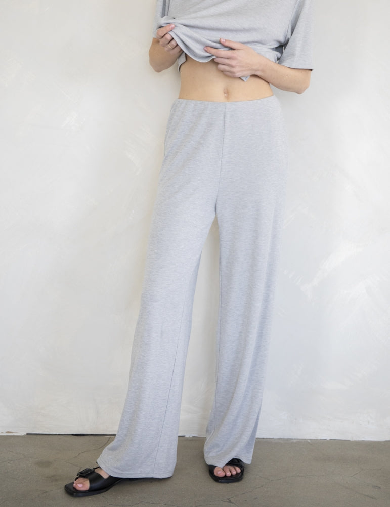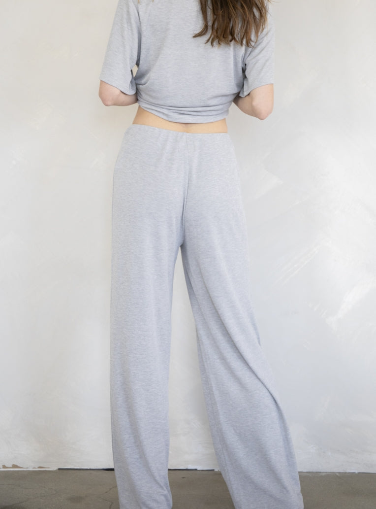 The Junie Modal Pant offers a comfortable and relaxed fit, thanks to its washed modal heather grey material. Perfect for everyday wear, this pant combines style and comfort for a versatile addition to your wardrobe.