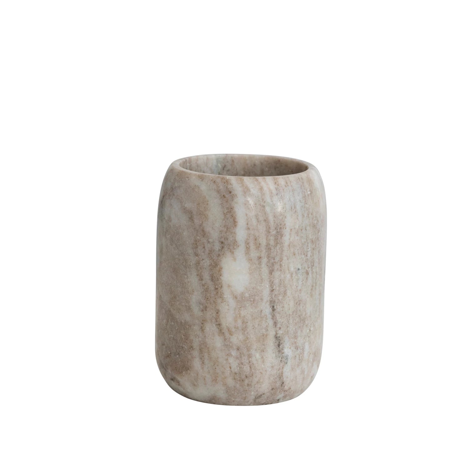 Dimensions: 4-1/2" Round x 6"H Marble Bottle Holder/Crock, Beige