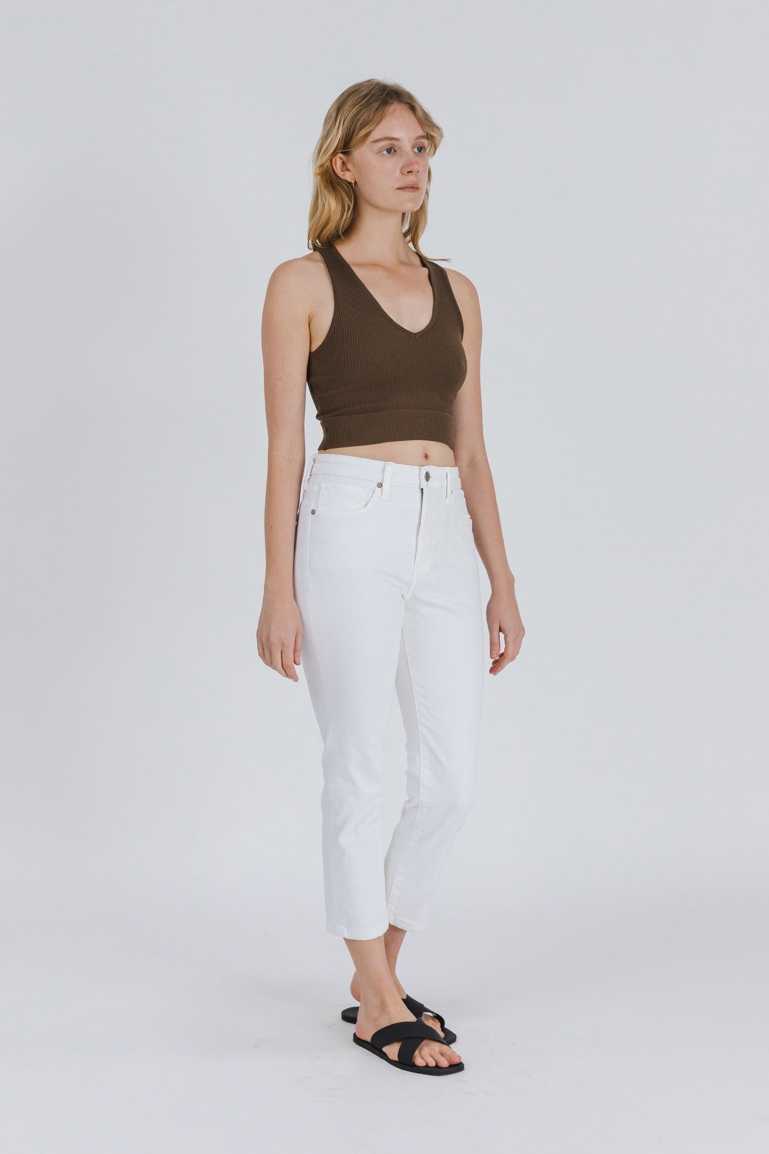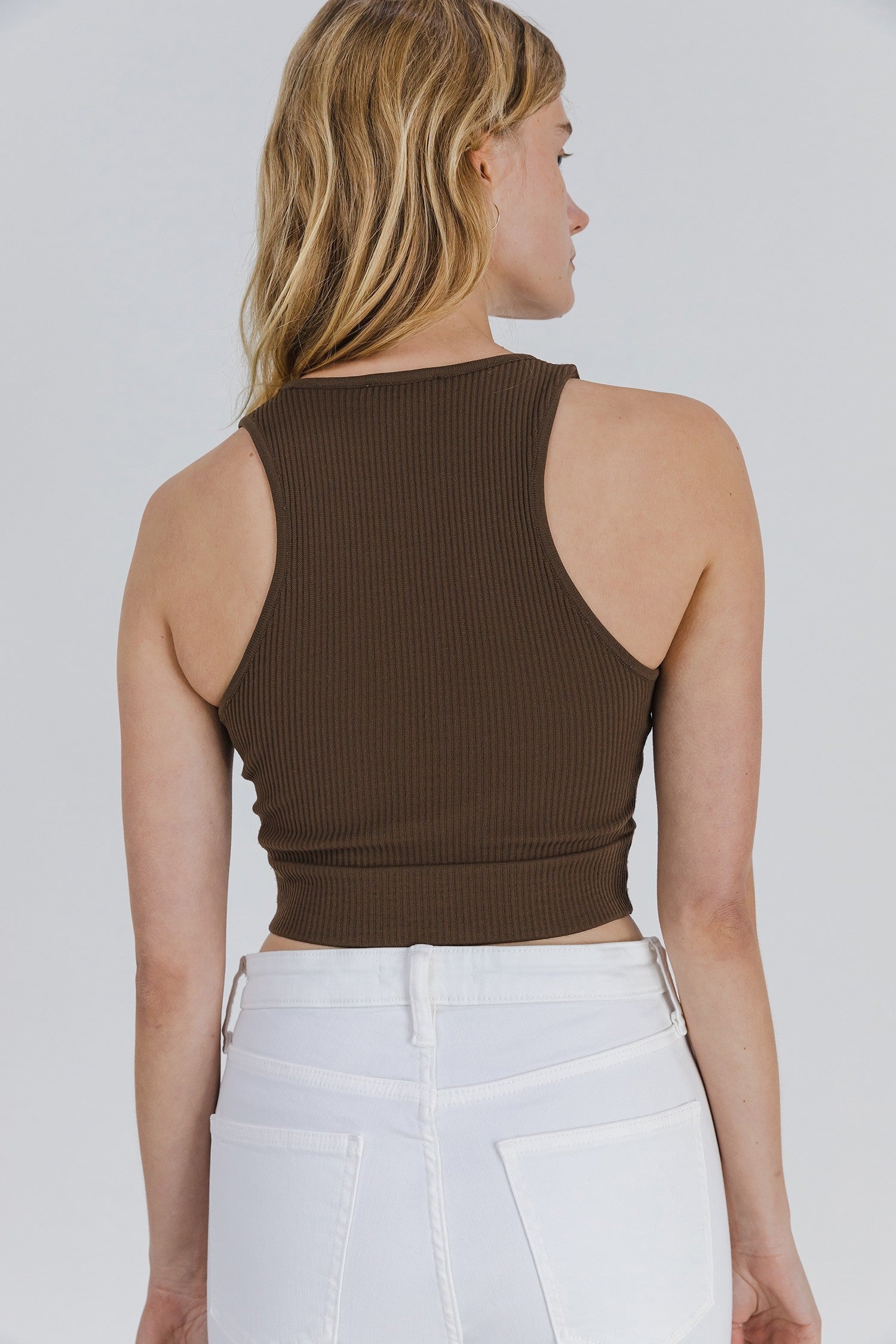 This expertly crafted cropped tank top features a seamless rib knit construction for a smooth, comfortable fit. Its low V-neckline enhances the silhouette with subtle sophistication, making it a versatile foundation piece for layering or standalone wear. Designed for both style and comfort, it offers breathable stretch and a flattering cropped length ideal for modern wardrobes.