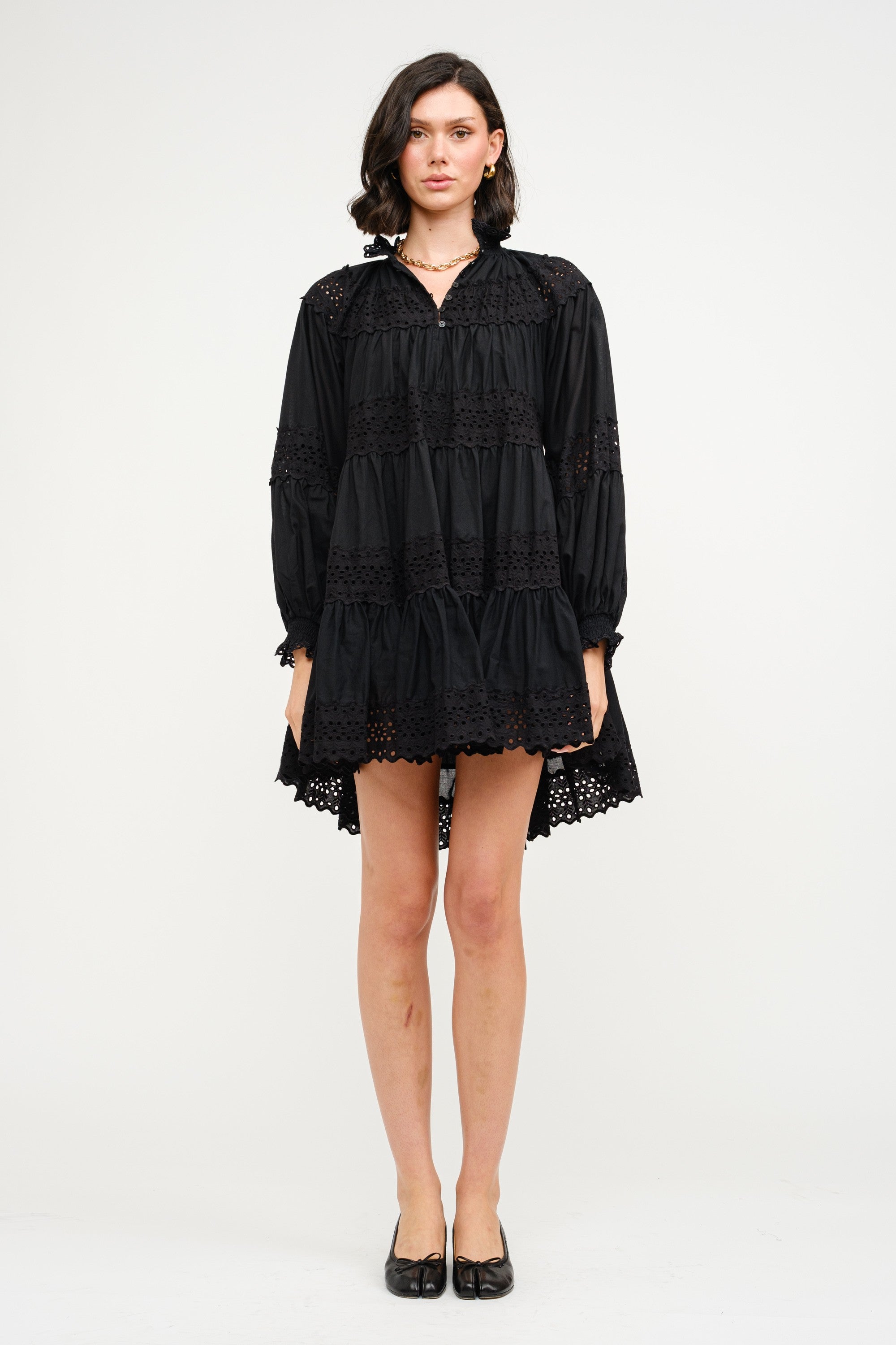 This Tripp Lace High Low Dress is perfect for any occasion. Made with a soft and comfortable cotton material, this dress features elegant trim insets that add a touch of sophistication. Its high low design is on trend and flattering for all body types. Stay stylish and comfortable with this must-have dress.