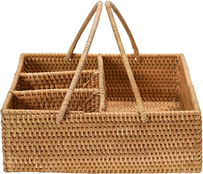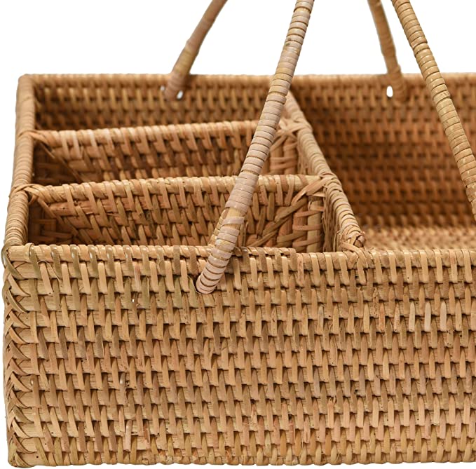 4 Section Hand Woven Rattan Caddy