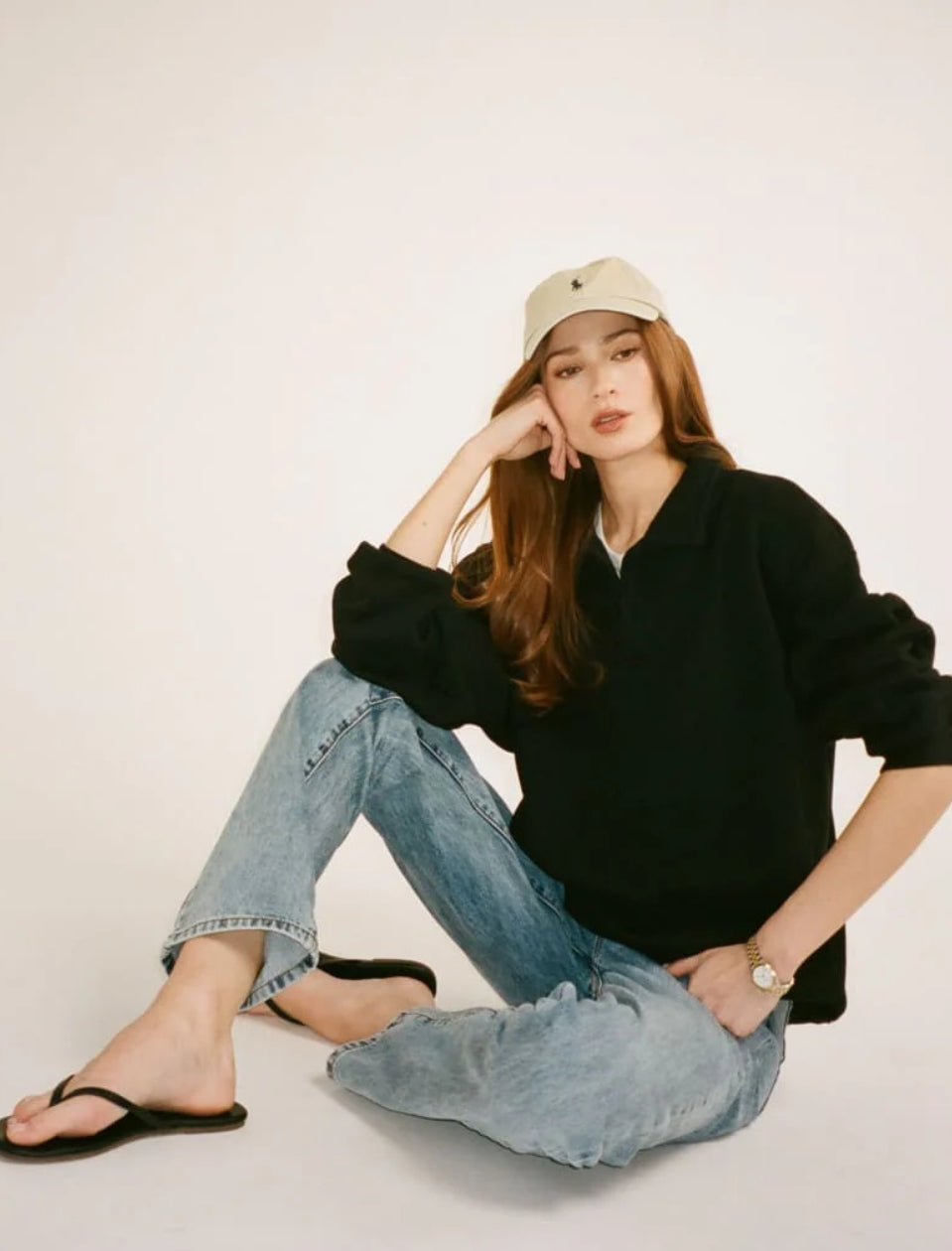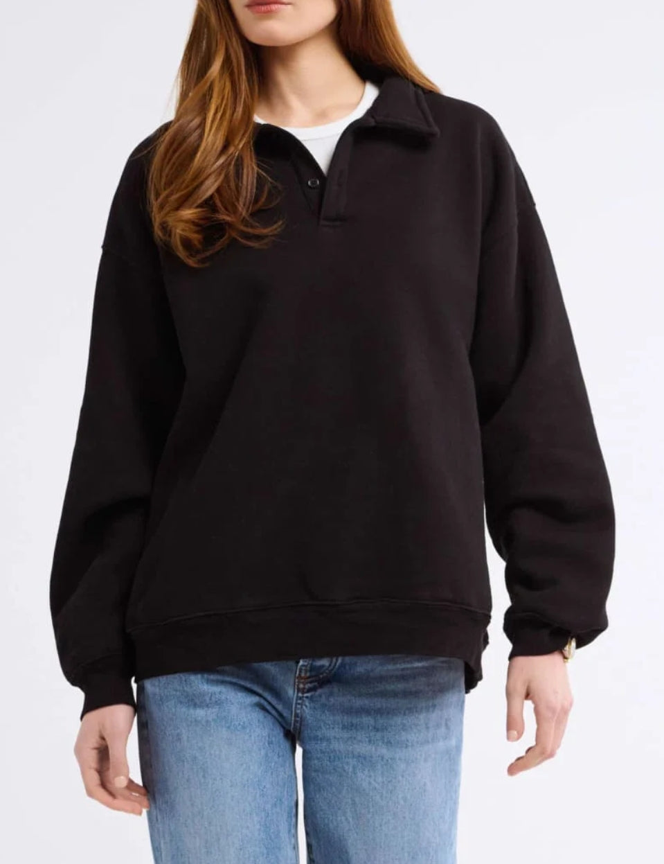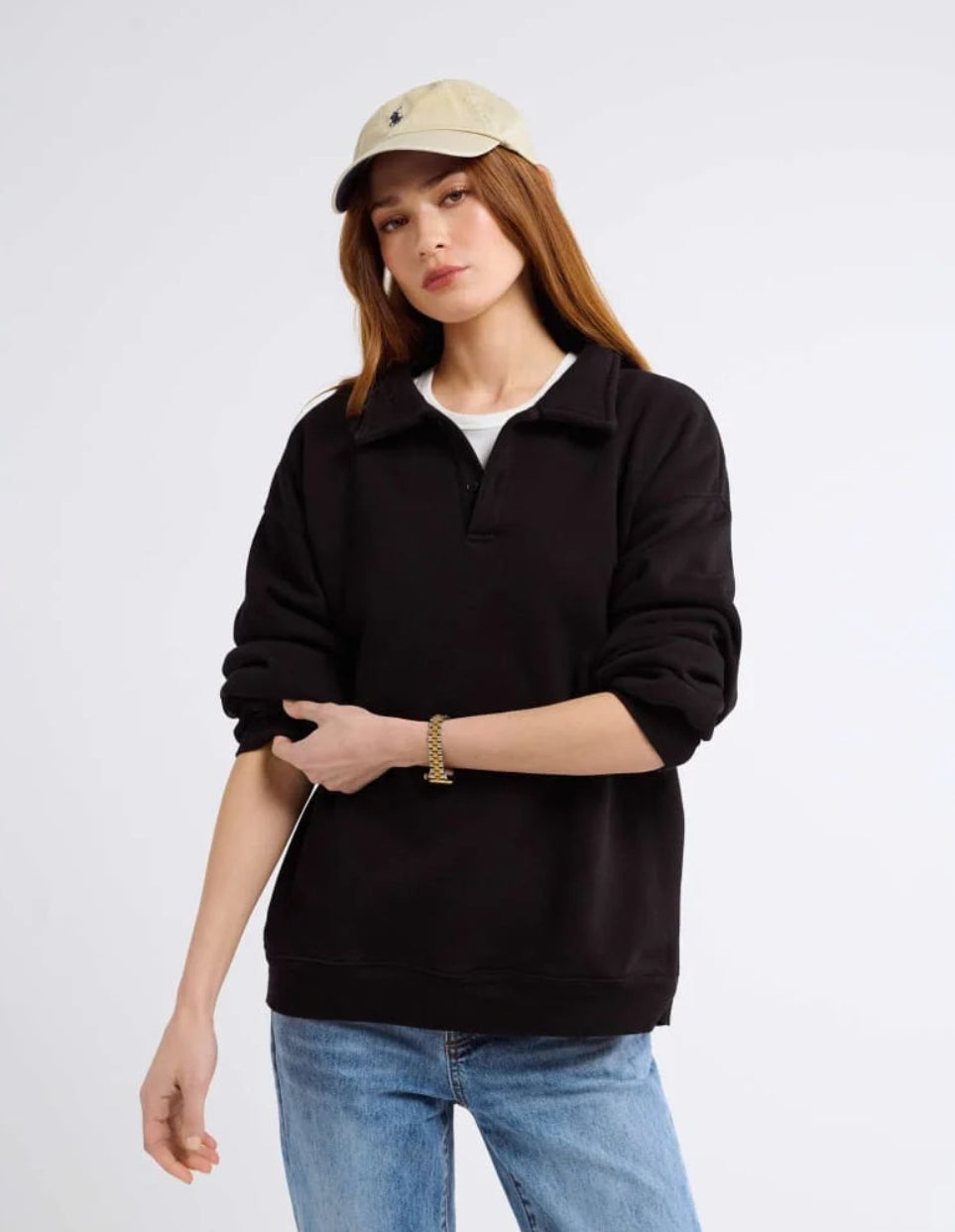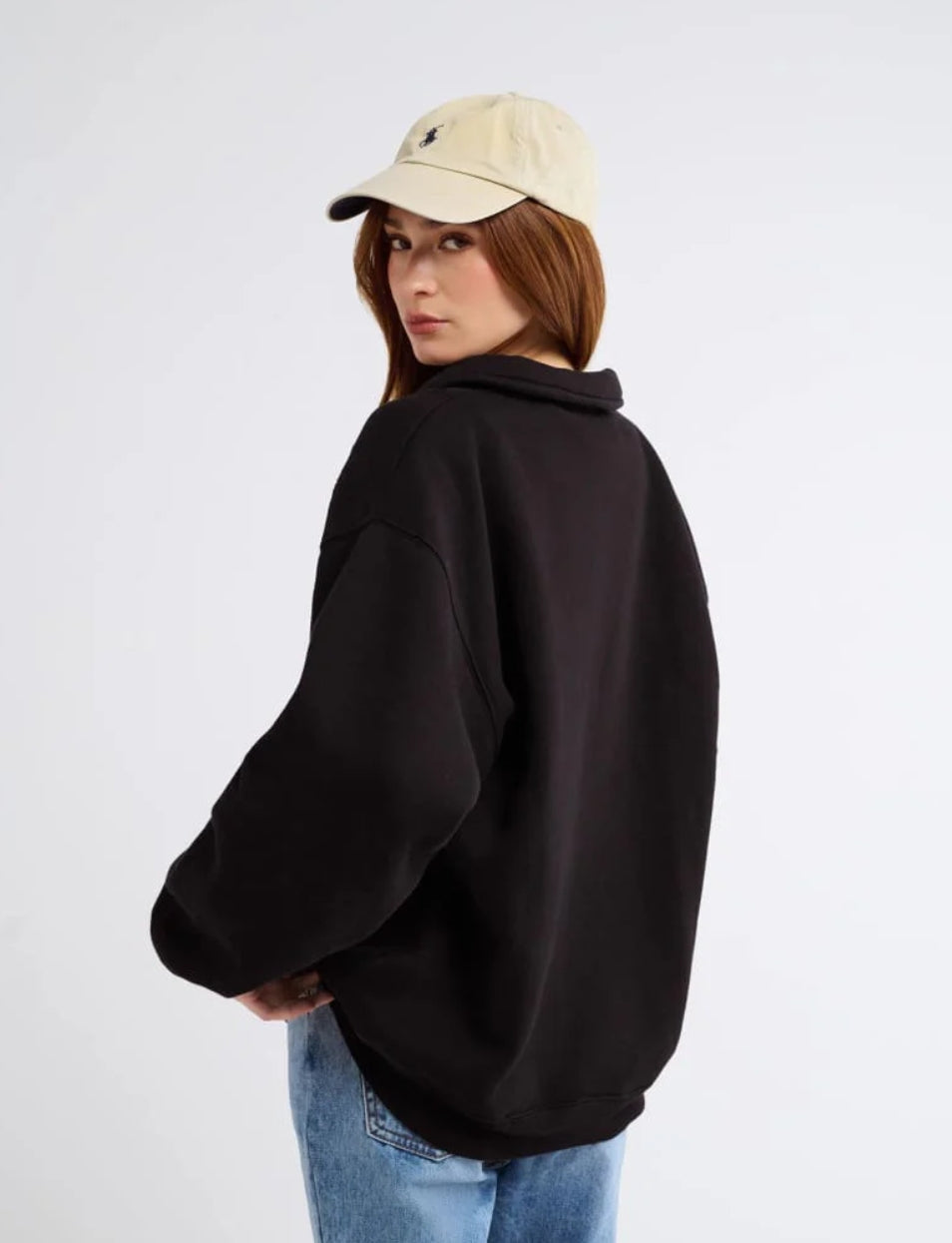 Inspired by vintage menswear and classic fleece pullovers, this oversized layer feels like something you stole from his closet—and never have to give back. The kind of sweatshirt you toss on for early morning flights, long drives, or lazy Sundays spent doing nothing at all.