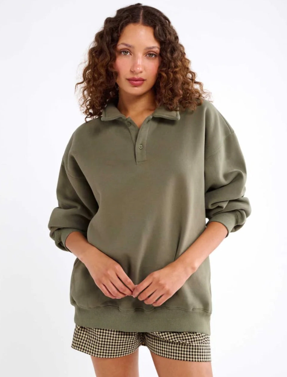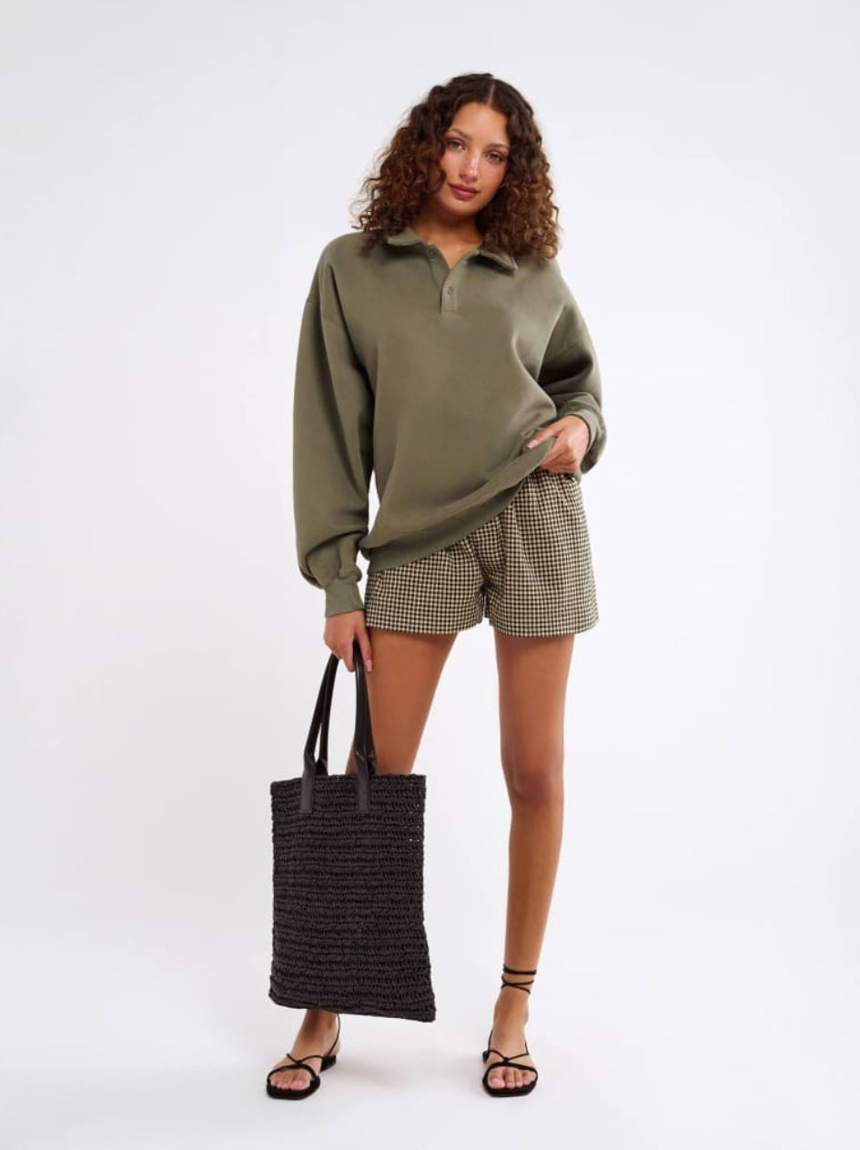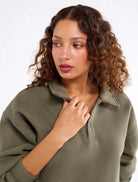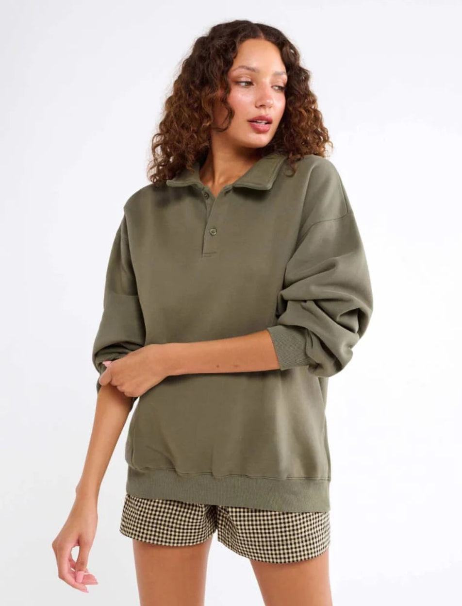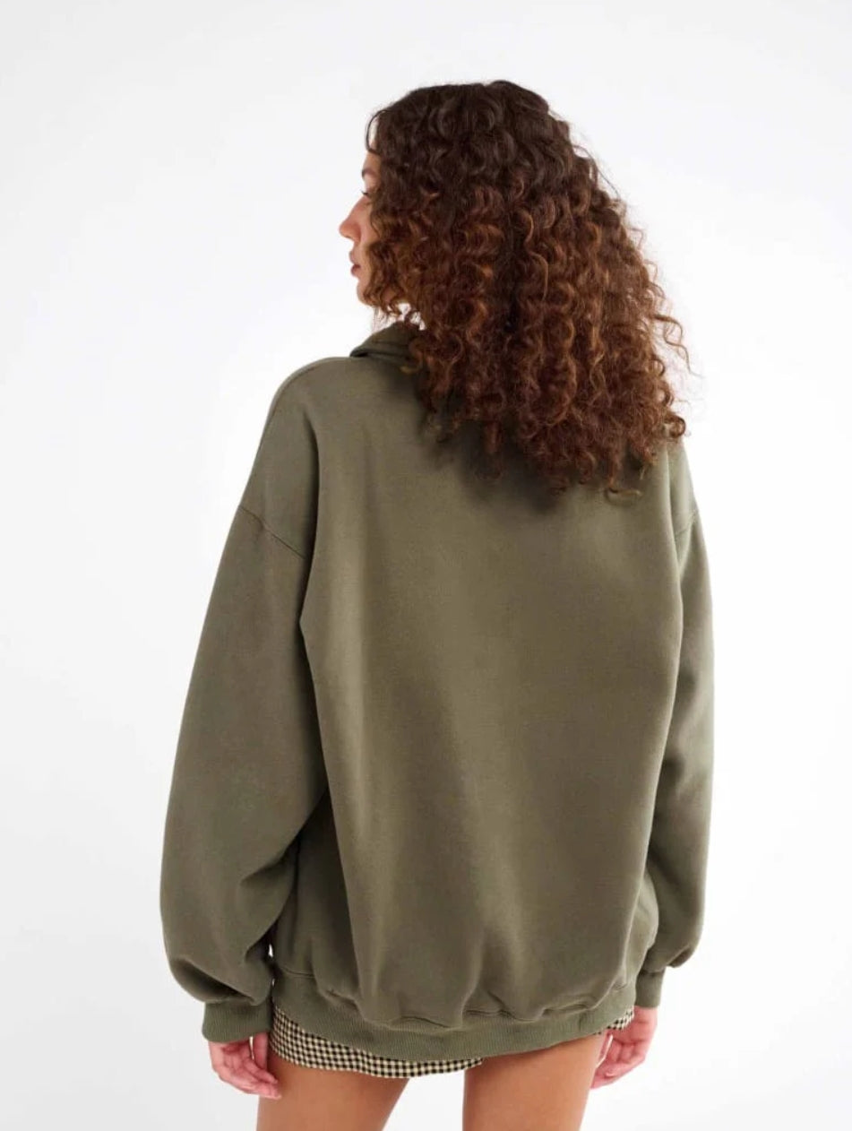 Inspired by vintage menswear and classic fleece pullovers, this oversized layer feels like something you stole from his closet—and never have to give back. The kind of sweatshirt you toss on for early morning flights, long drives, or lazy Sundays spent doing nothing at all.